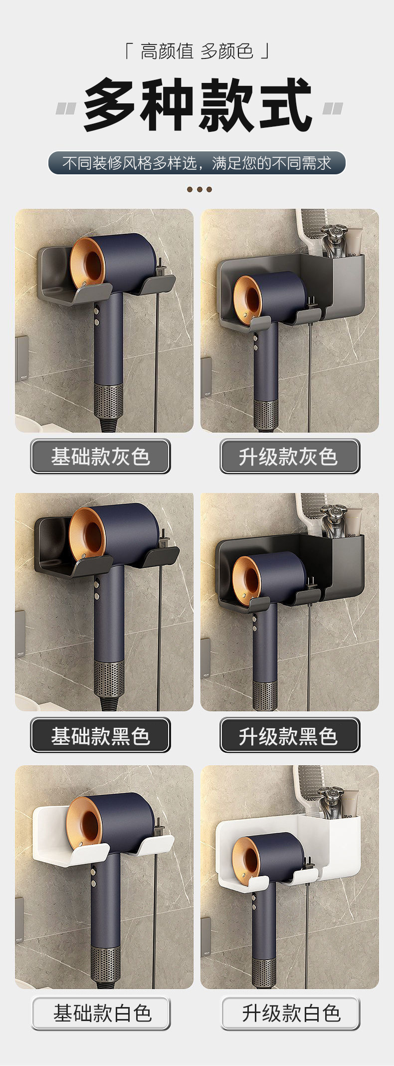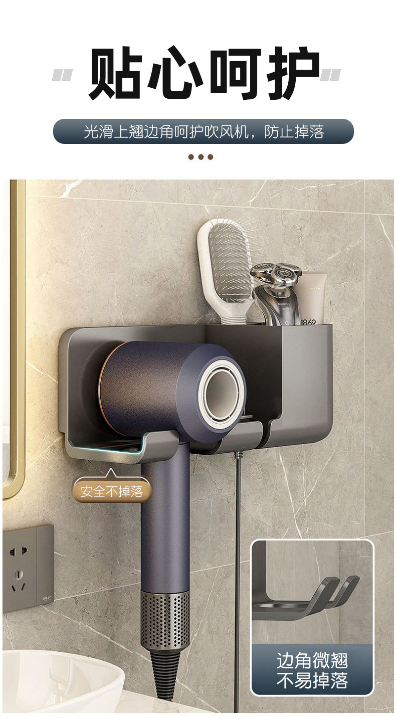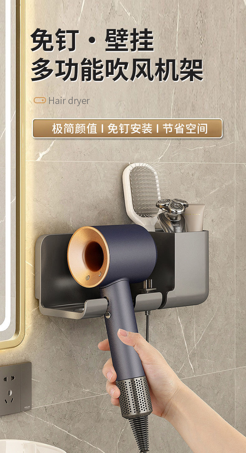헤어 드라이어 브래킷 펀치 무료 욕실 헤어 드라이어 걸이 랙 욕실 다기능 스토리지 랙 헤어 드라이어 랙