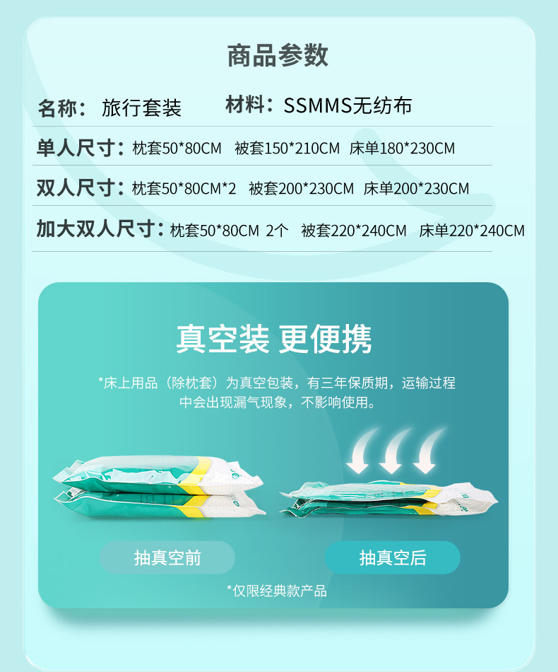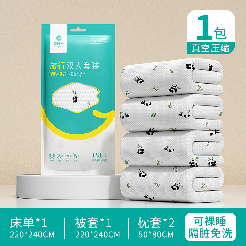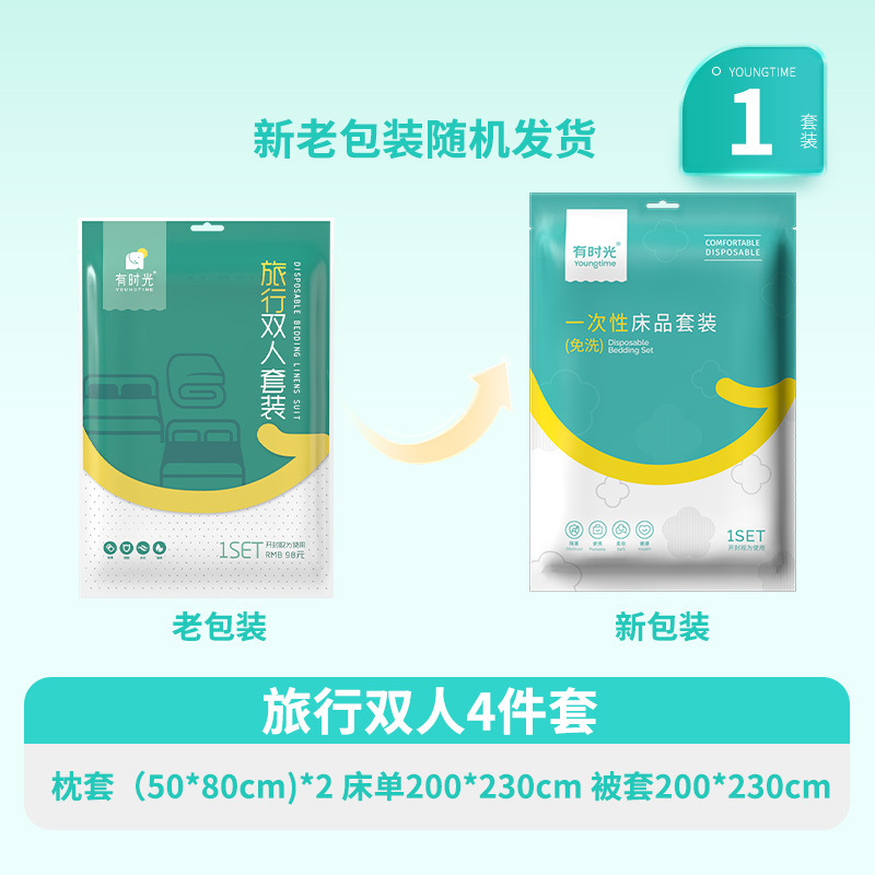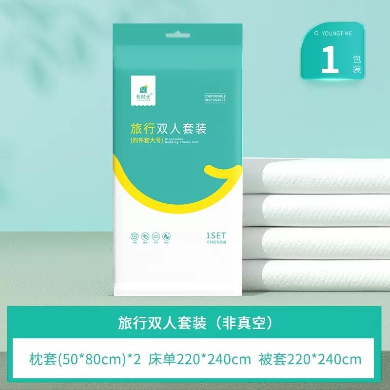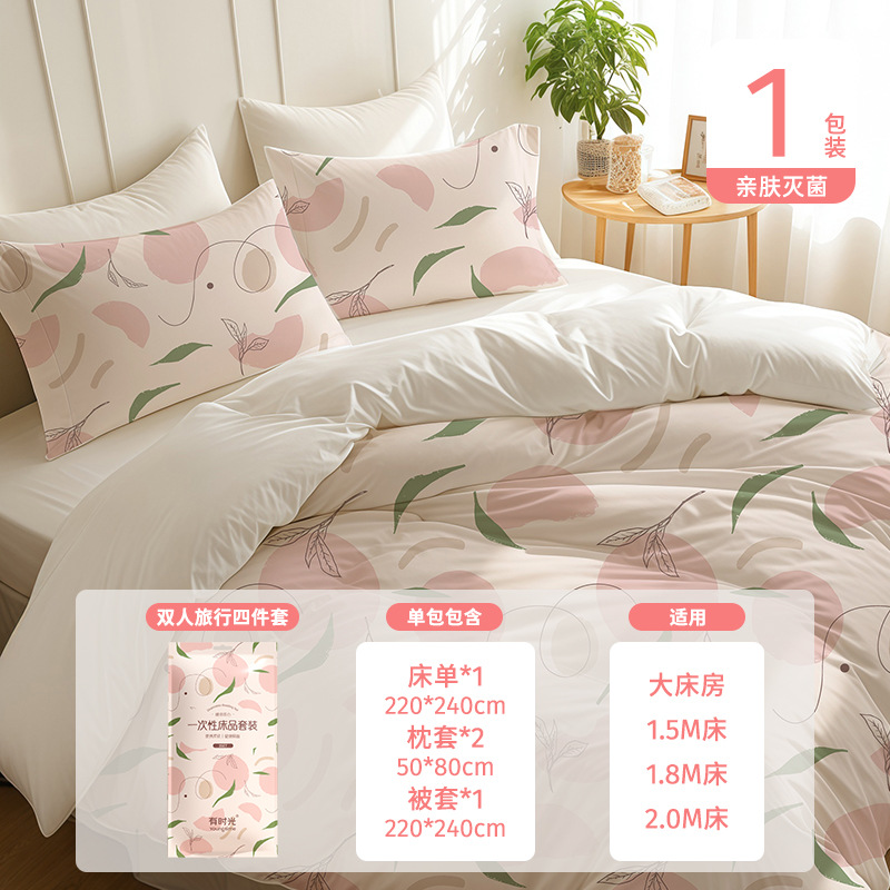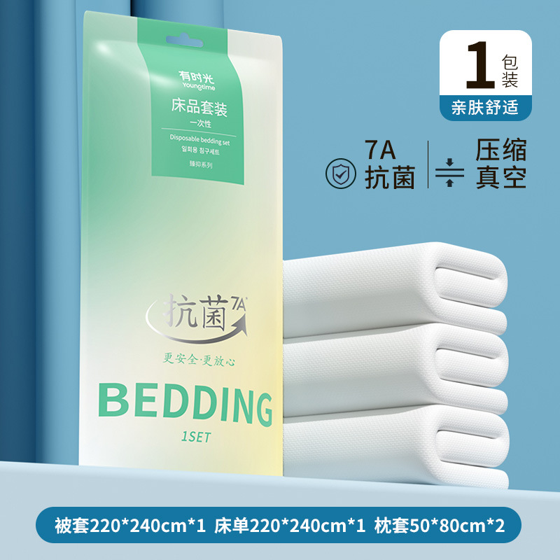 일회용 침대 시트, 이불 커버, 베개 커버 4종 세트, 호텔 용품, 이불 커버, 목욕 타월, 방오 수면 가방, 항균