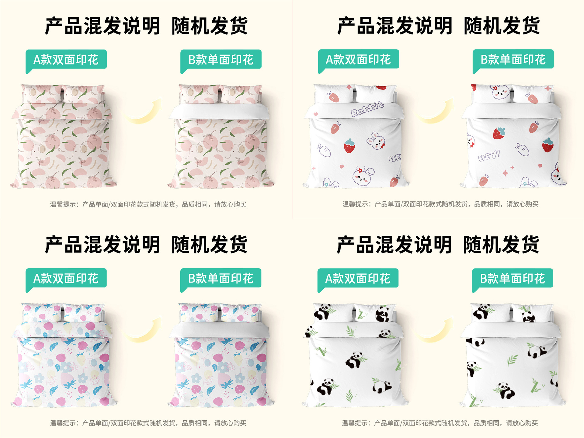 • [팬더 프린트 모델] 대형 더블 4종 세트 [1세트]