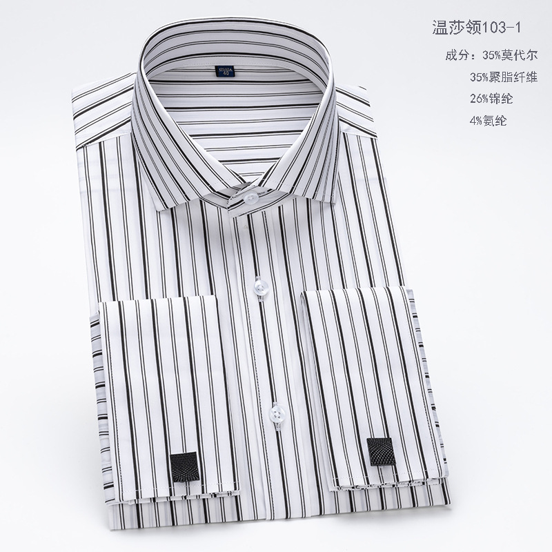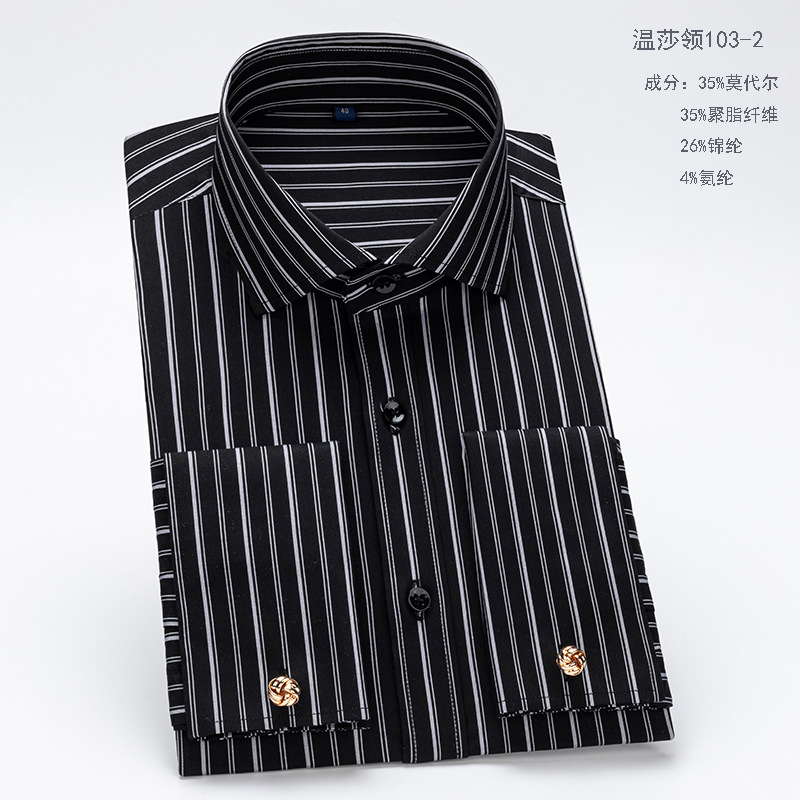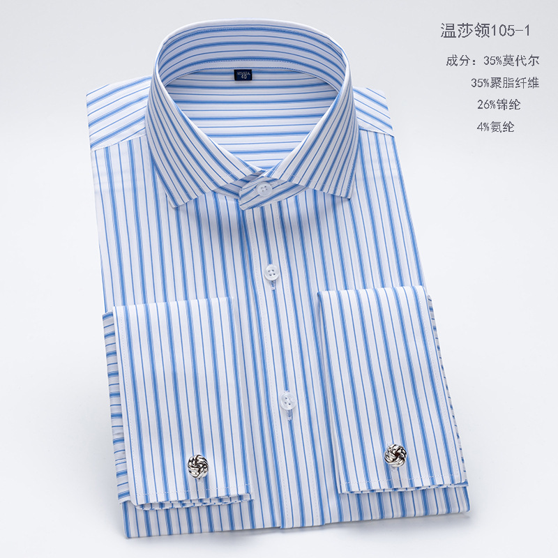 남성용 셔츠 긴팔 윈저 칼라 슬림핏 모달 비즈니스 정장 셔츠 커프스 스트라이프 셔츠 캐주얼 신상품