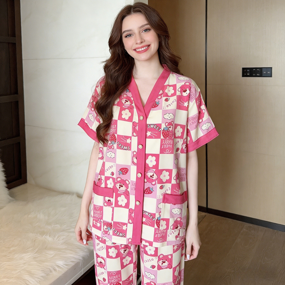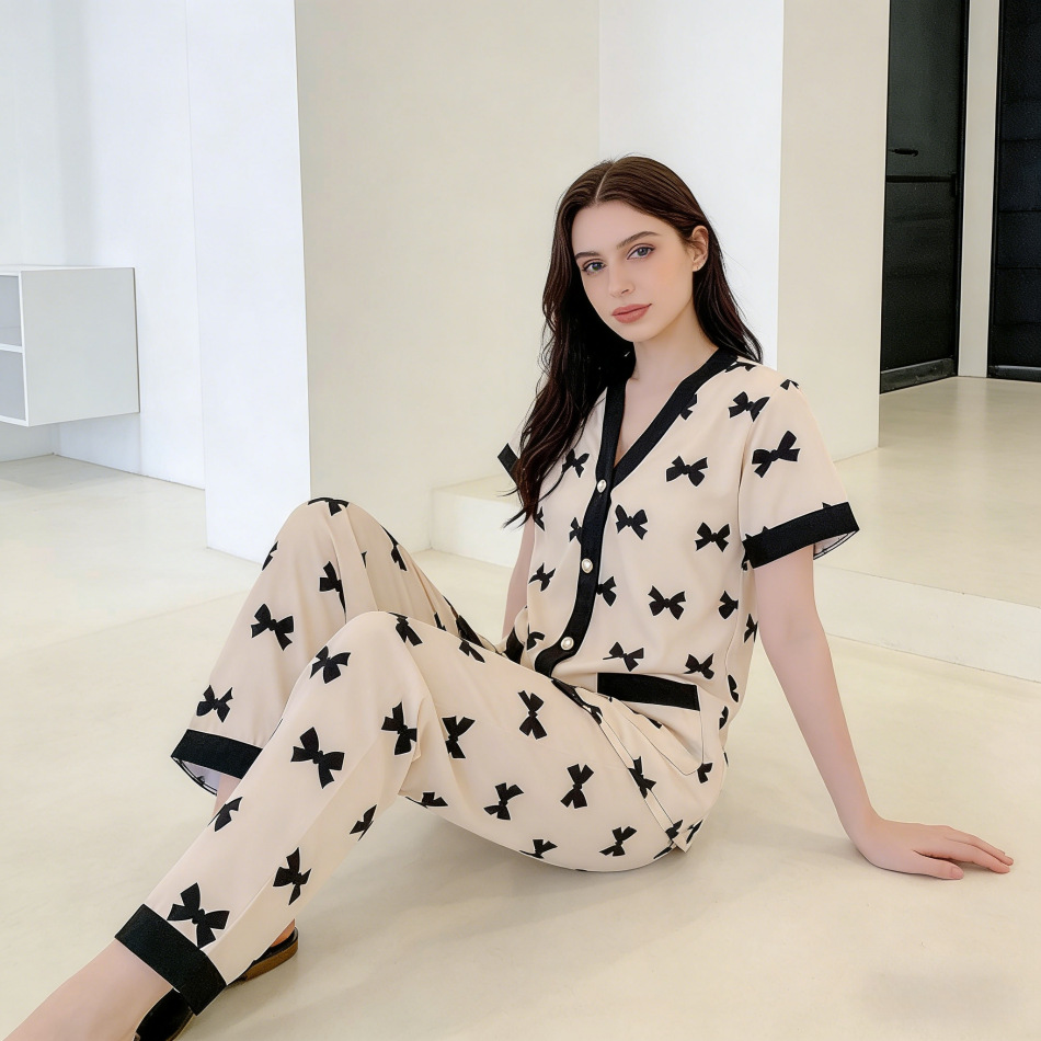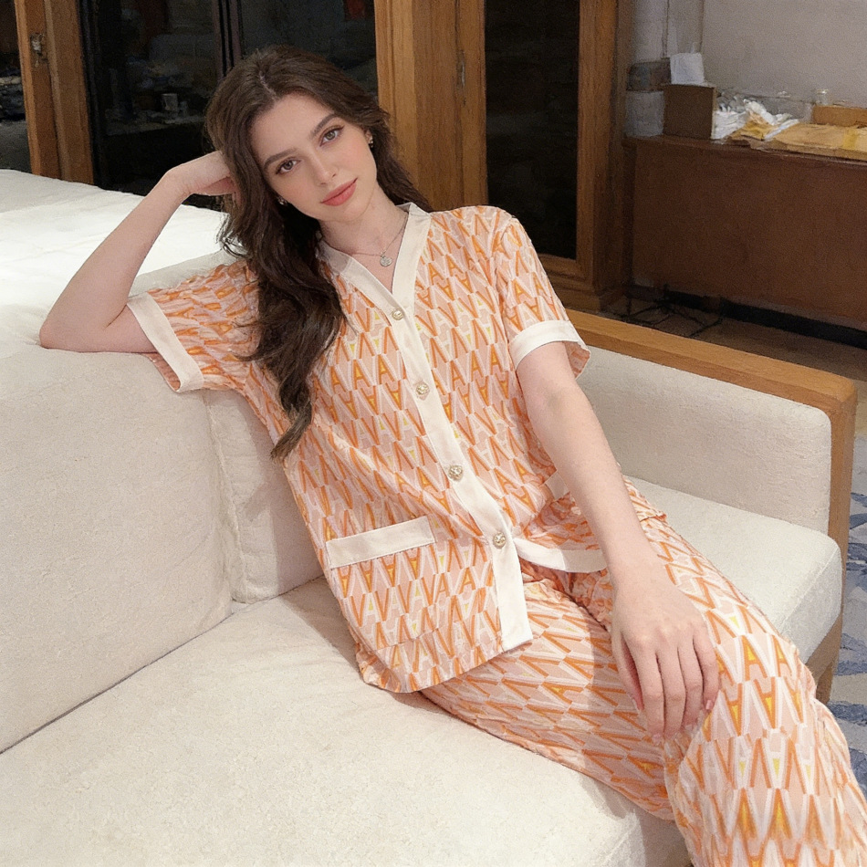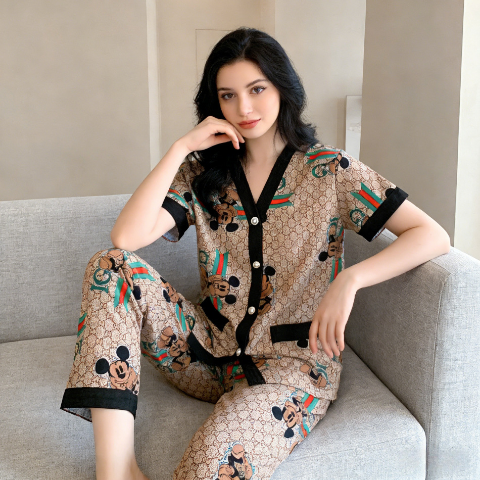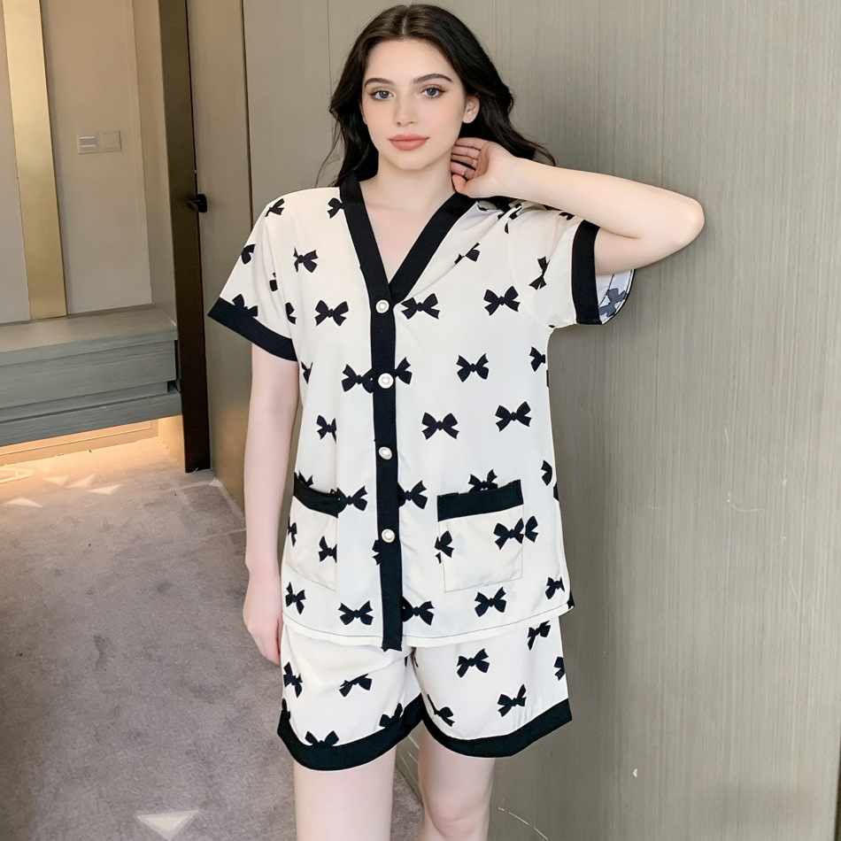 2026년 여름 동남아시아 여성용 잠옷, 아이스 실크 얇은 반팔 인조 실크 홈웨어 세트, 해외 직배송스토어 가기