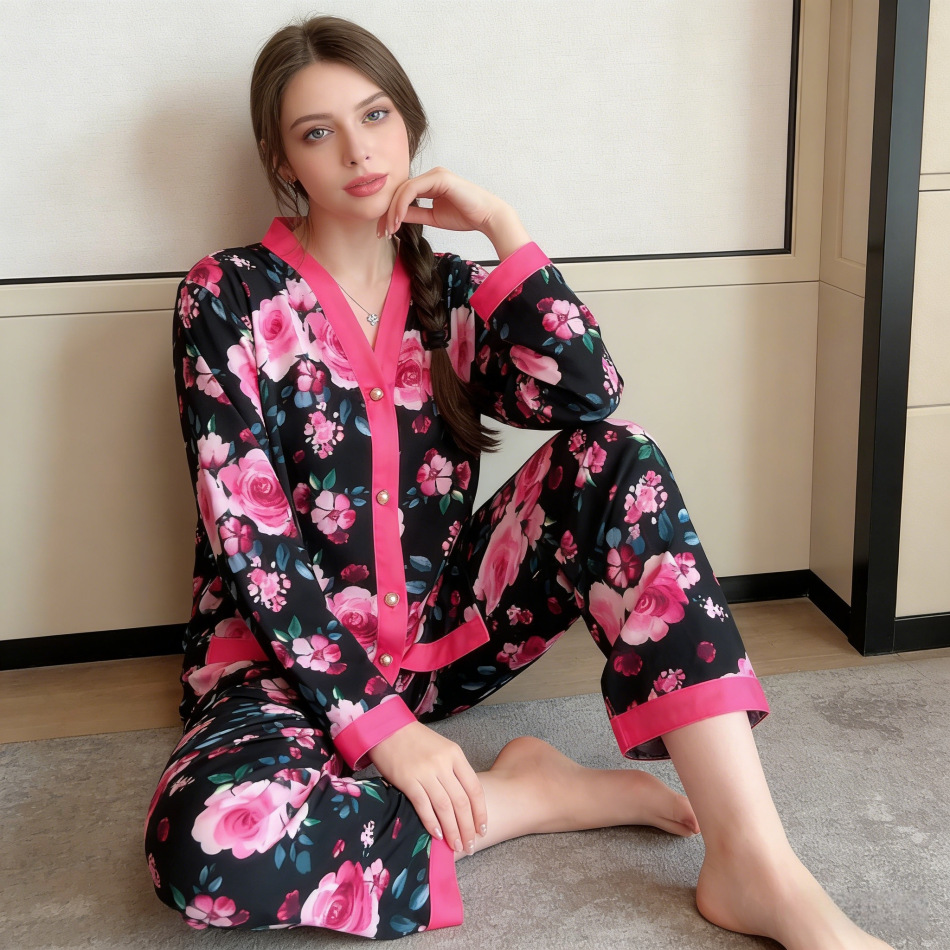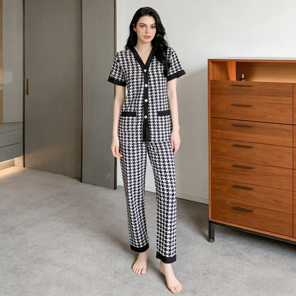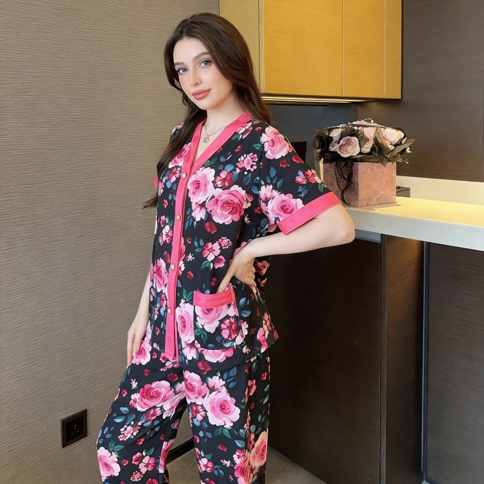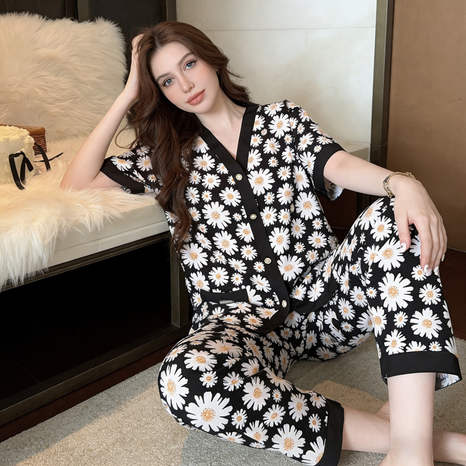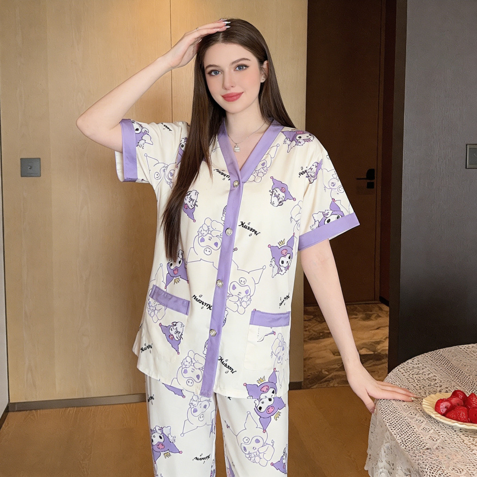 2026년 여름 동남아시아 여성용 잠옷, 아이스 실크 얇은 반팔 인조 실크 홈웨어 세트, 해외 직배송스토어 가기