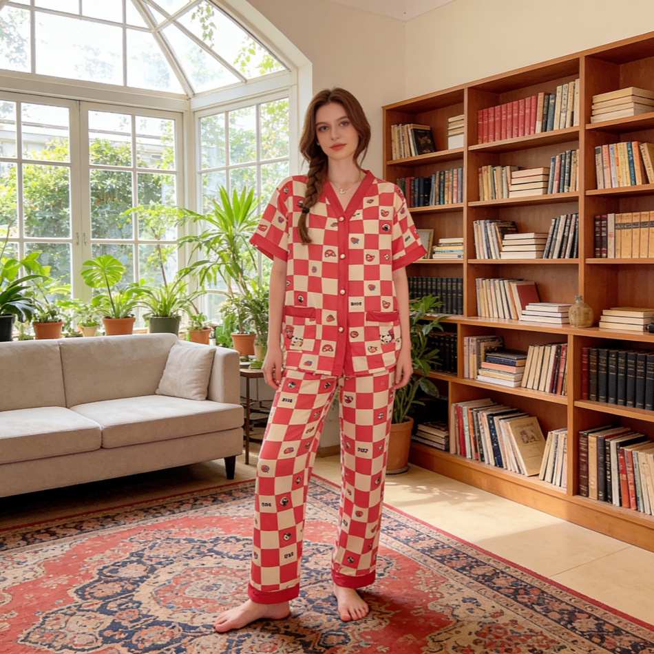 • 더블 쇼트 865#격자 무늬 딸기 곰