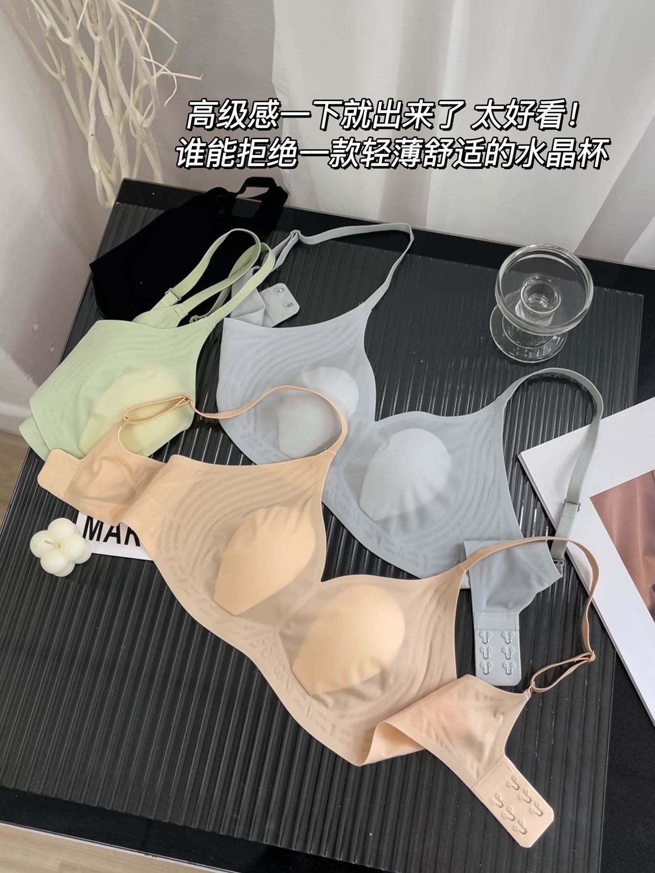 하이 퀄리티 초박형 아이스 젤리 마스크 크리스탈 컵 토끼 귀 아름다운 뒤 속옷 여성을위한 원활한 푸시 업 스포츠 브라스토어 가기