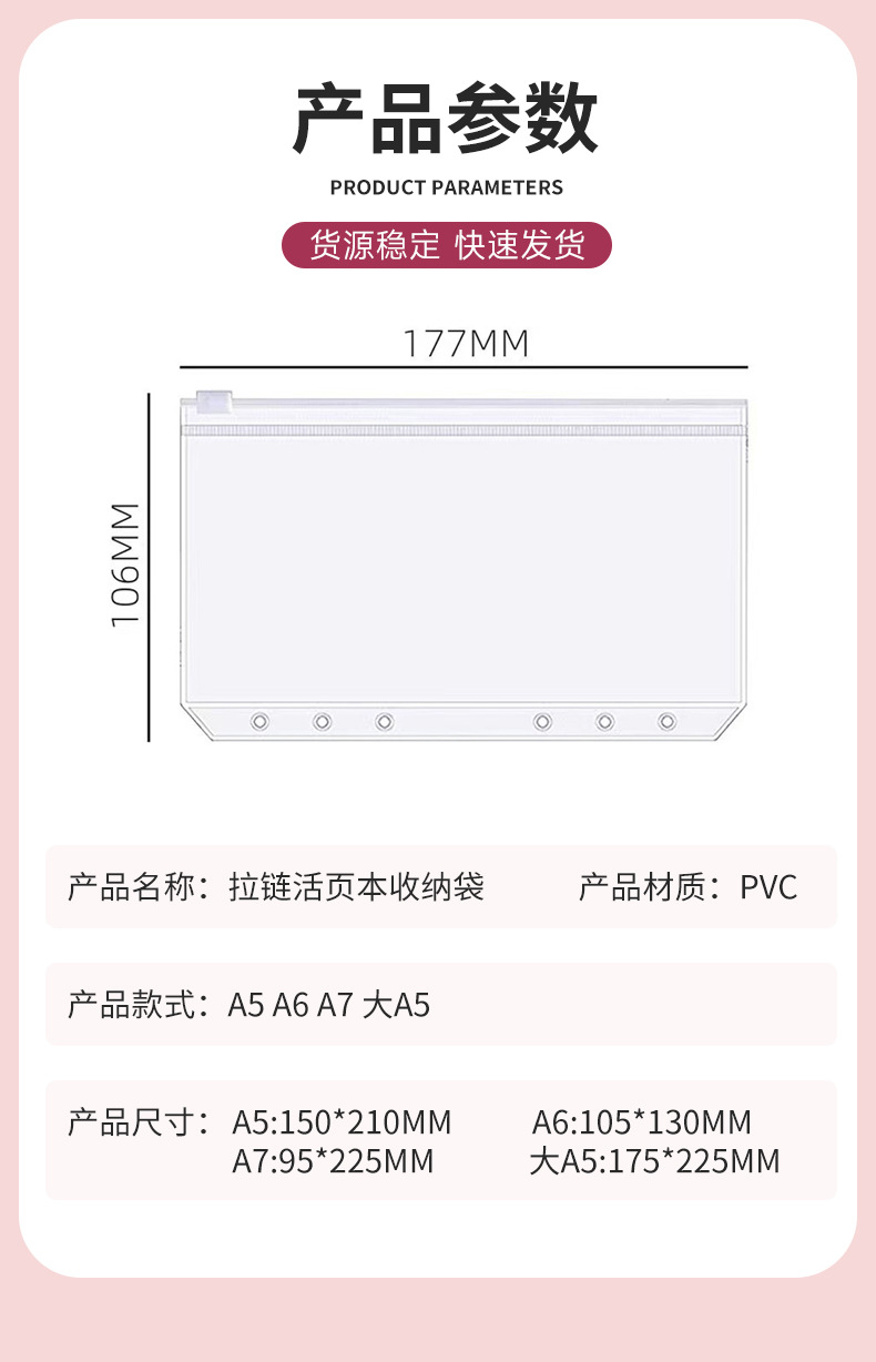 국경 간 공급 A6 홀더형 PVC 지퍼백 영수증 가방 A5A6 수첩 보관 가방 PVC 지퍼 영수증 가방
