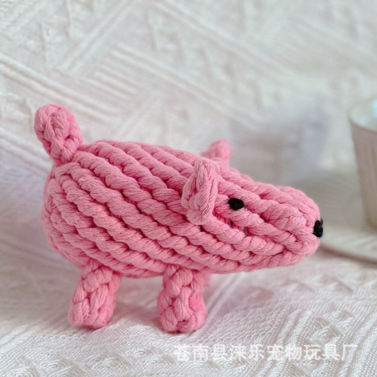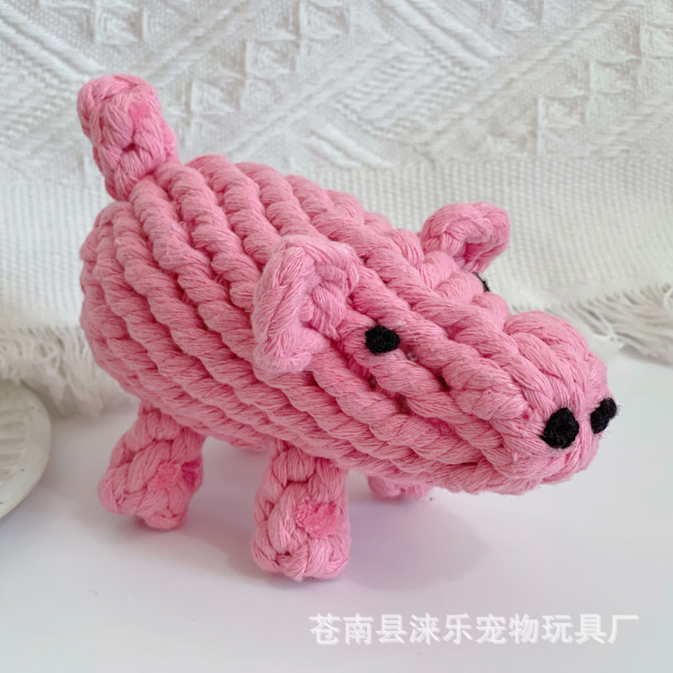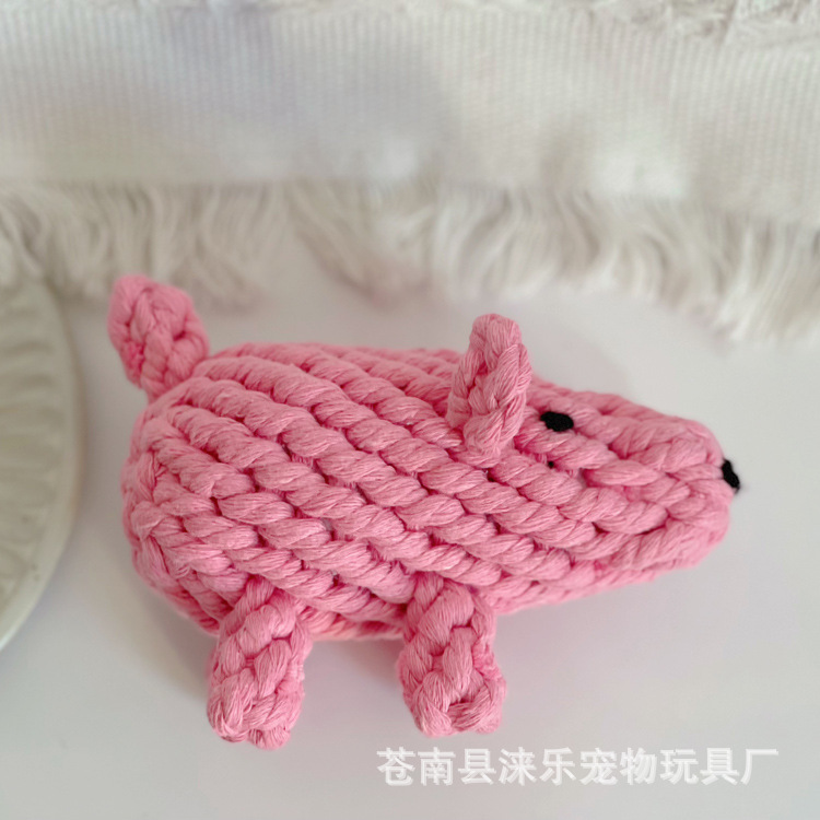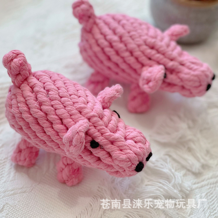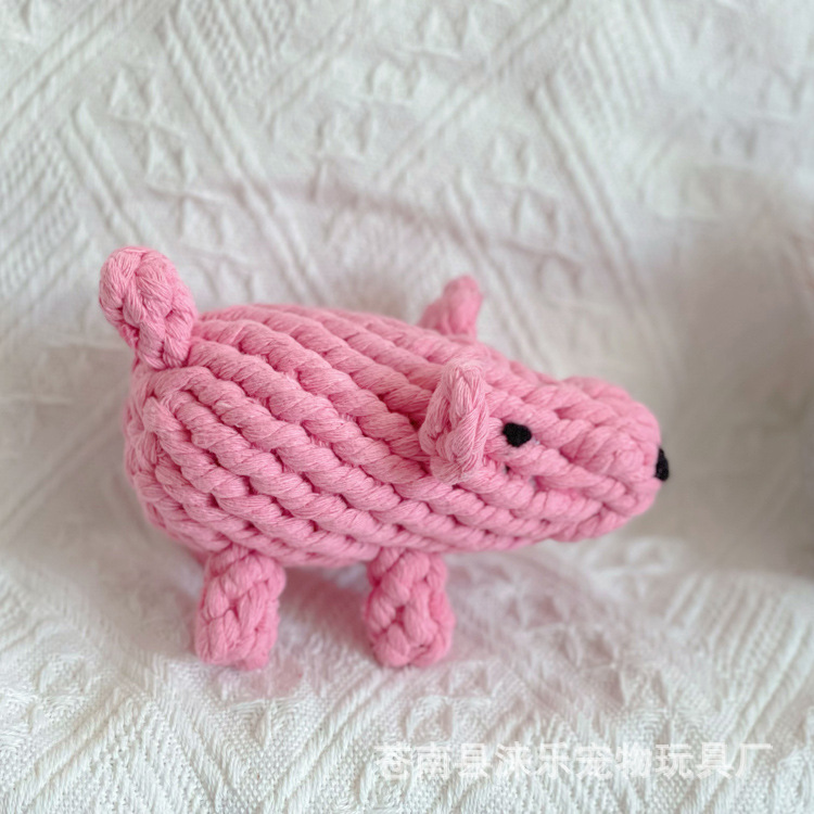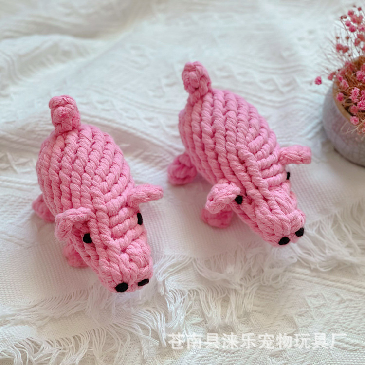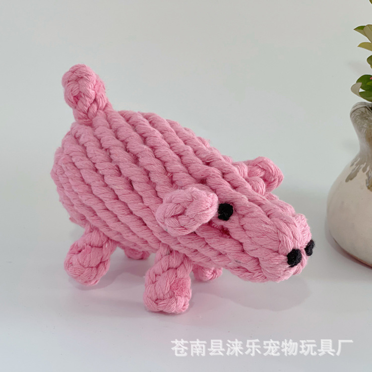 새로운 핑크 돼지 개 장난감 강아지 물린 저항 크고 작은 개 어금니 면 로프 짠 애완 동물 장난감