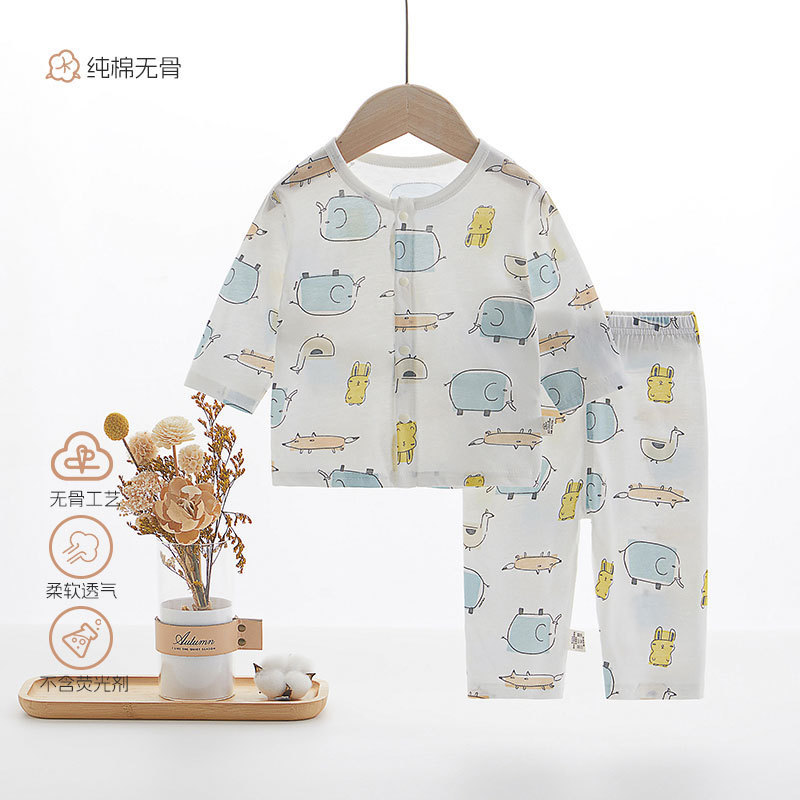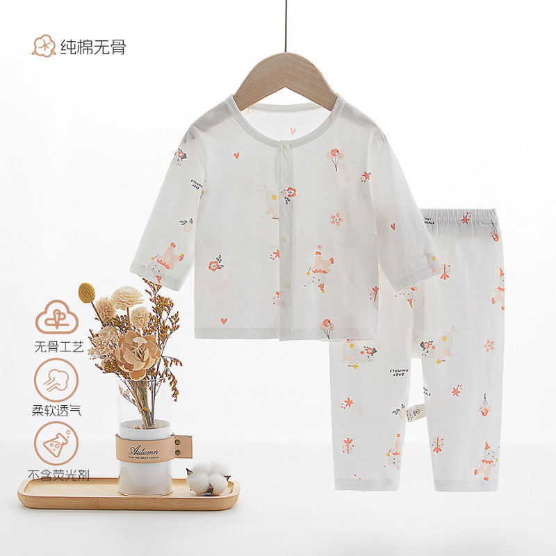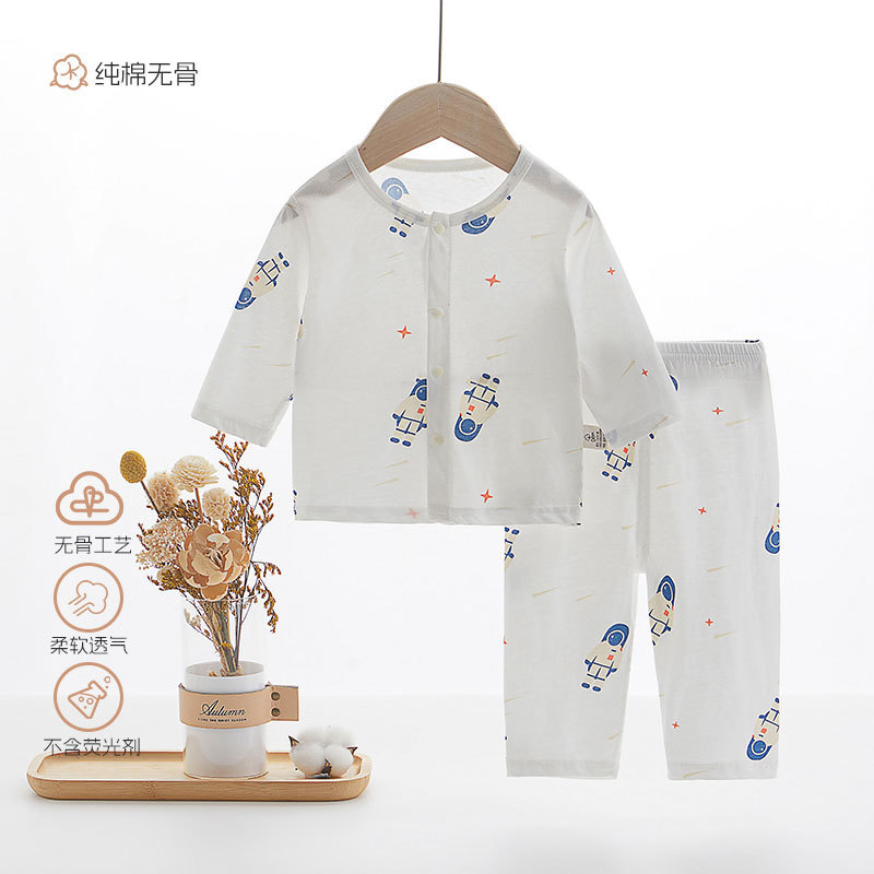 아기 여름 세트 얇은 긴팔 에어컨 옷 잠옷 분할 여름 아기 옷 면 여름 2 종 세트스토어 가기