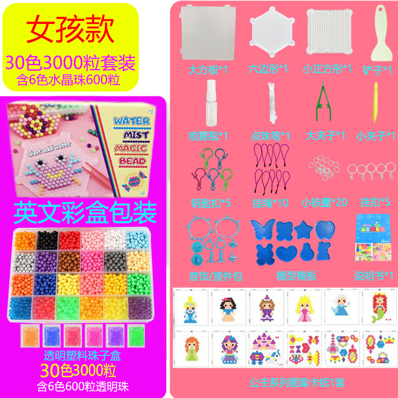 • 30 색 3000 곡물 세트 (6 색 크리스탈 구슬 600 곡물 포함) 소녀