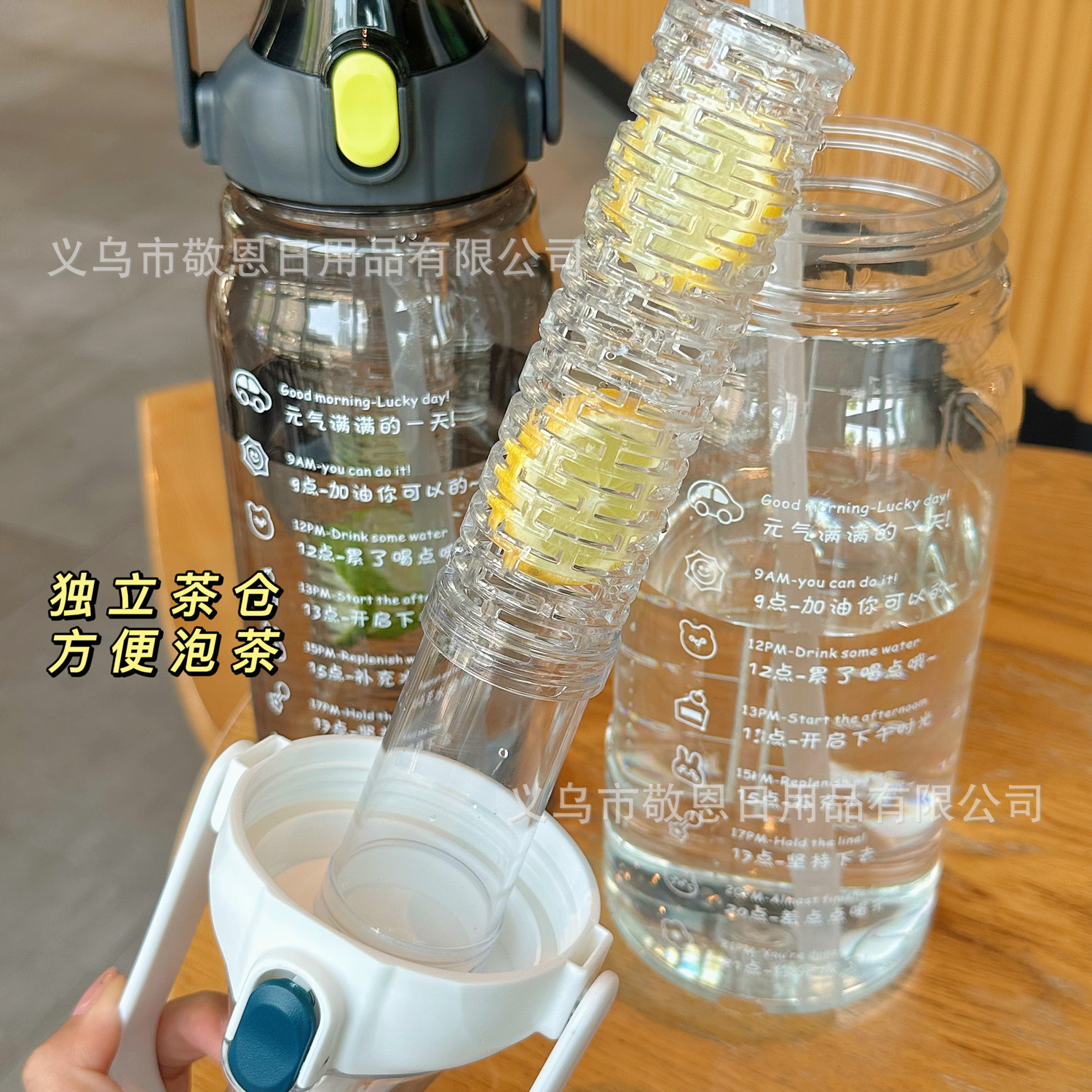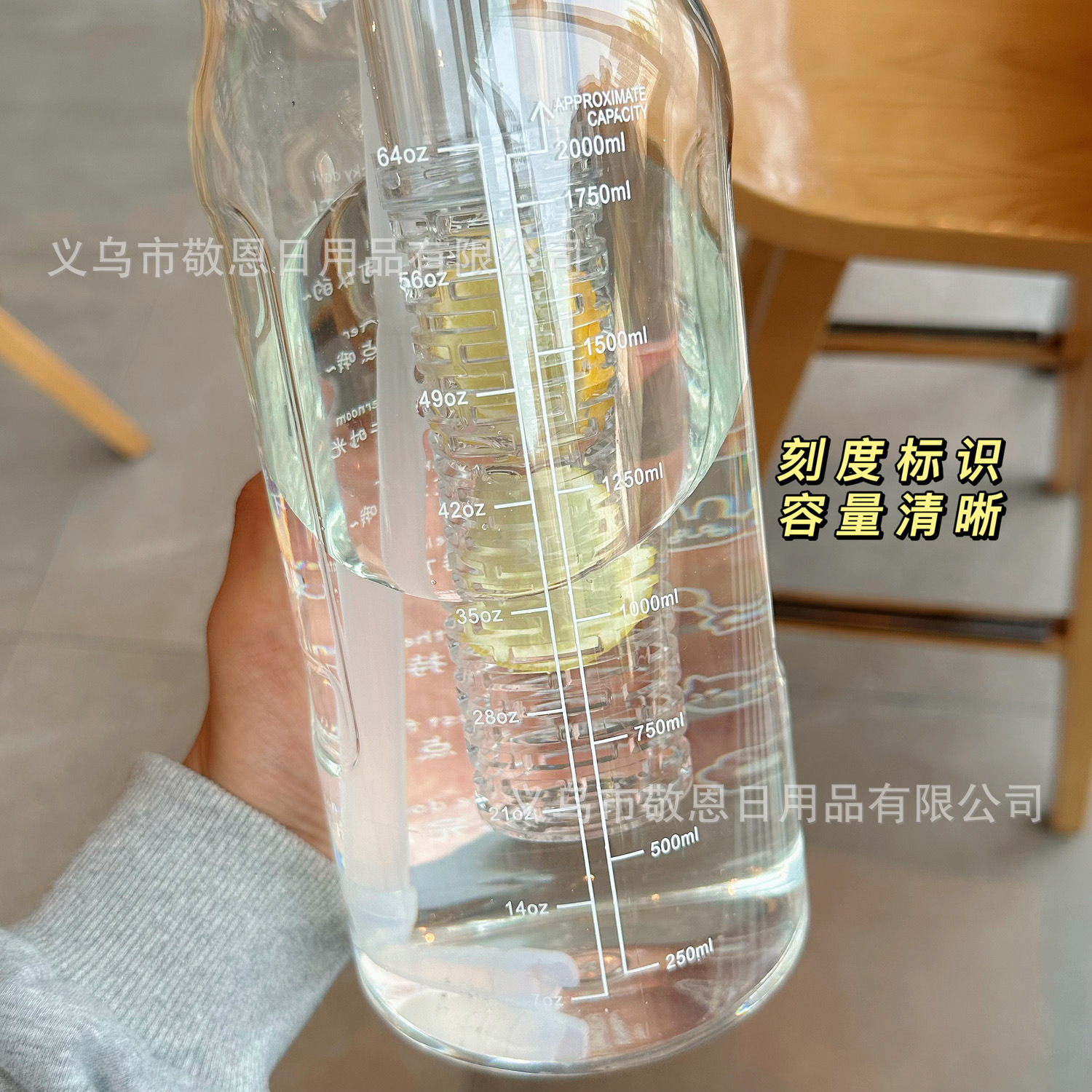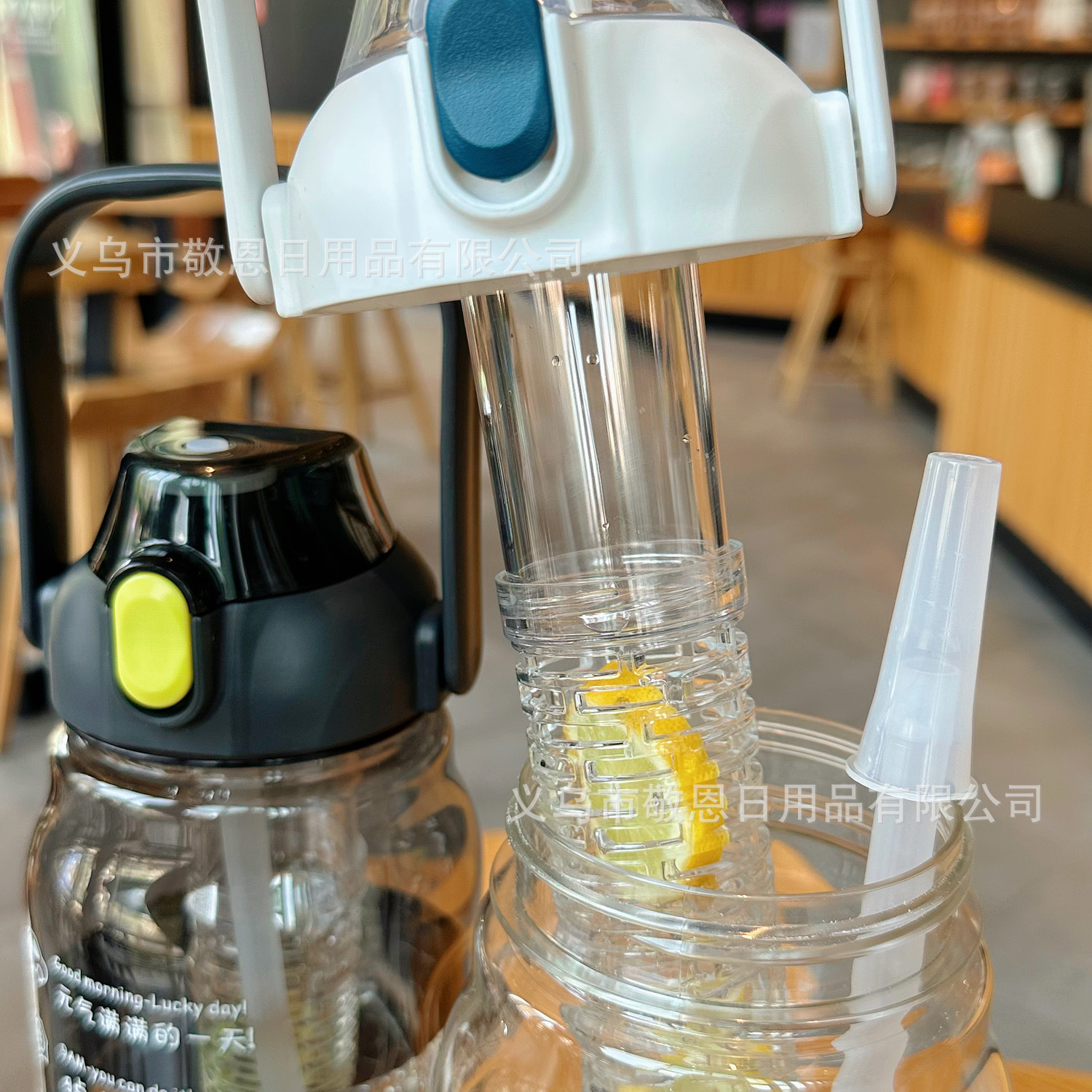 밀짚 차 드레인 스포츠 주전자 휴대용 손잡이 컵 2000ml 대용량 신플라스틱 물 컵