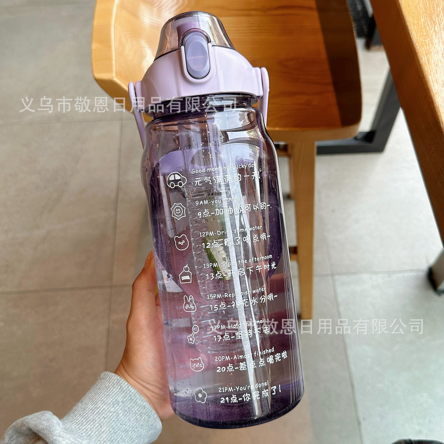 밀짚 차 드레인 스포츠 주전자 휴대용 손잡이 컵 2000ml 대용량 신플라스틱 물 컵스토어 가기