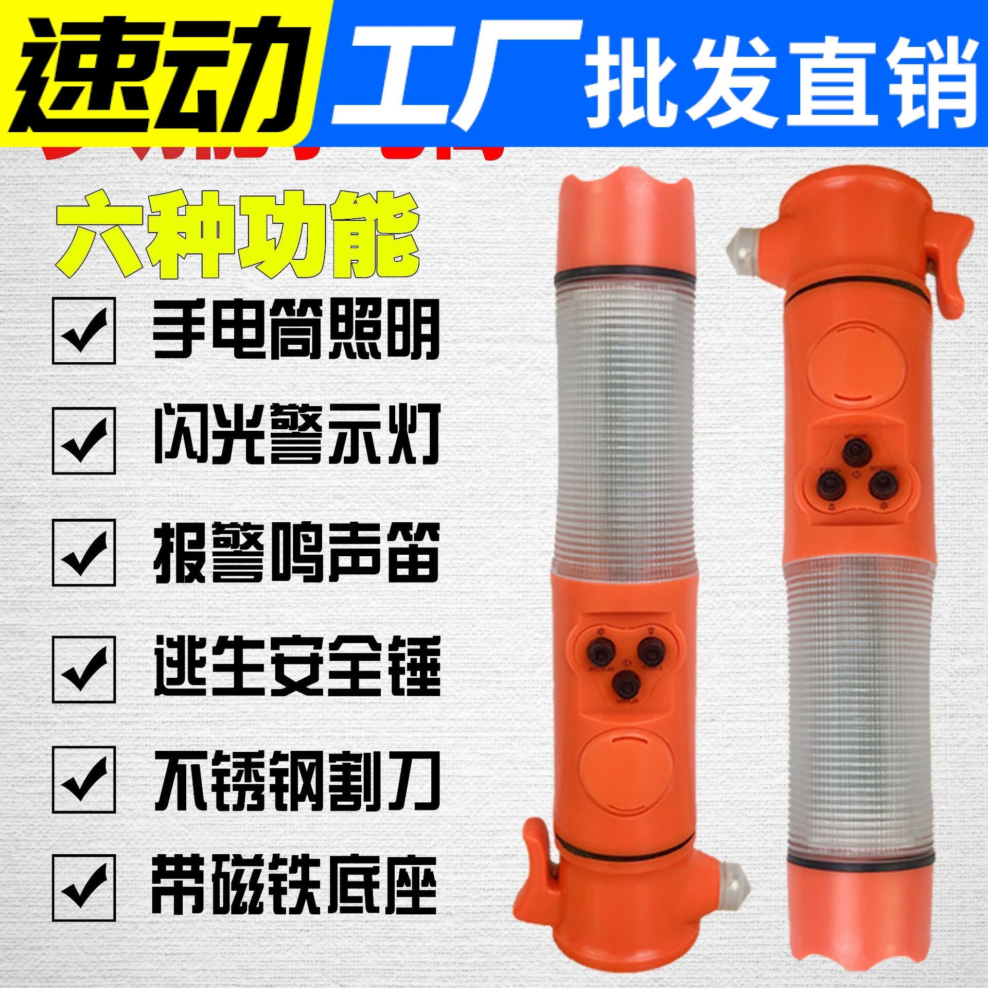 다기능 음향 및 조명 경보 손전등 자동차 탈출 창 차단기 안전 자기 구조 망치 화재 손전등 6 대 1스토어 가기