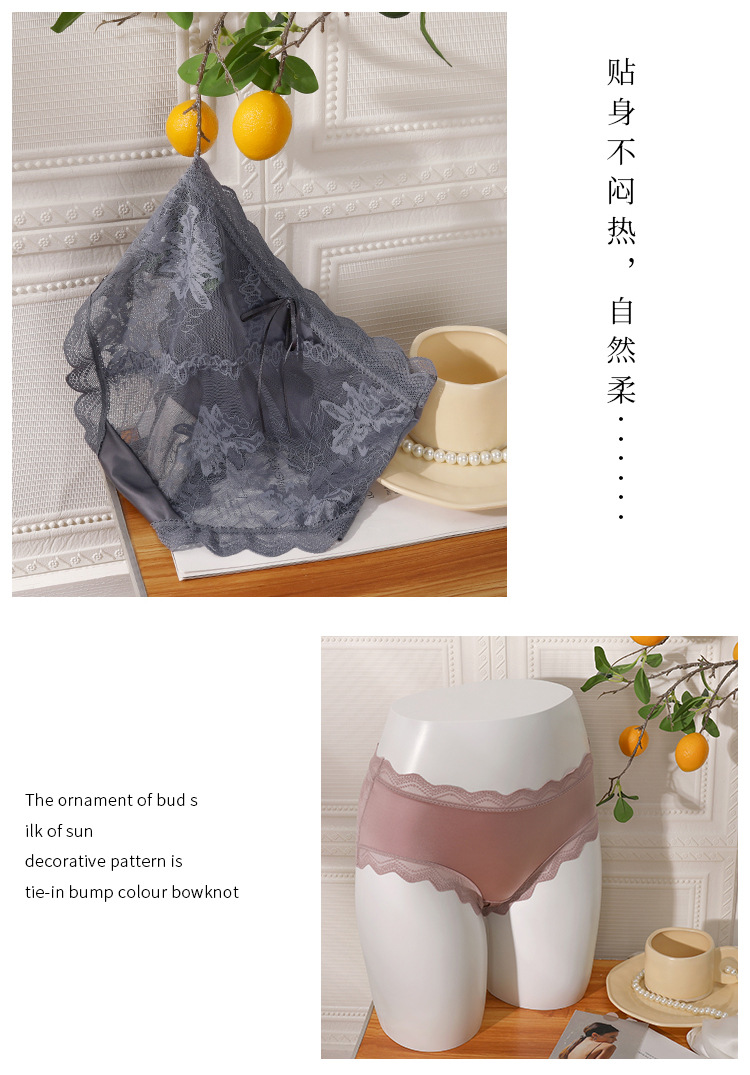 레이스 속옷 여성의 섹시한 감성 중간 허리 항균 순수 욕망 소녀의 원시 순면 원활한 반바지 새로운 스타일