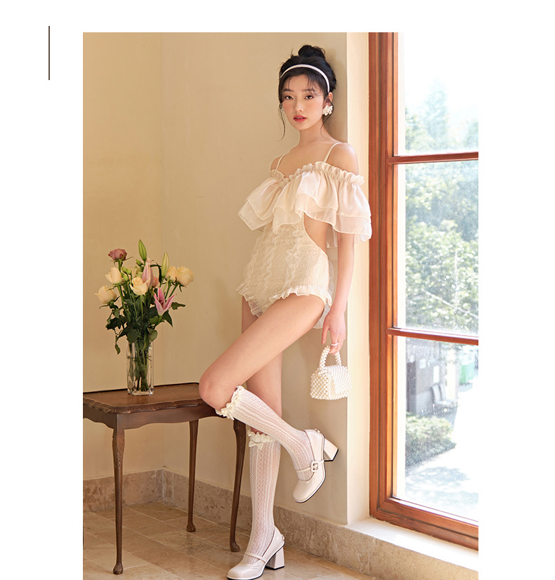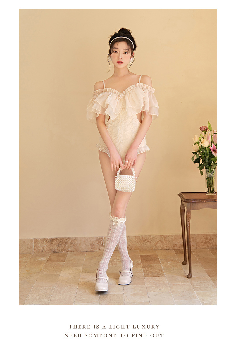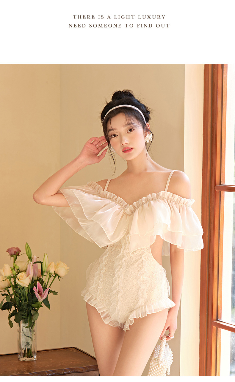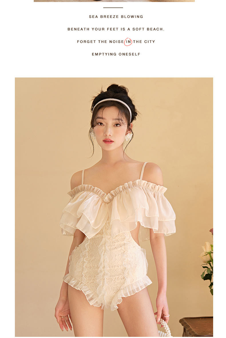 러플 섹시 수영복 여성 여름 2023 새로운 원피스 삼각형 배꼽 커버 슬리밍 보수적 슬링 온천 수영복스토어 가기