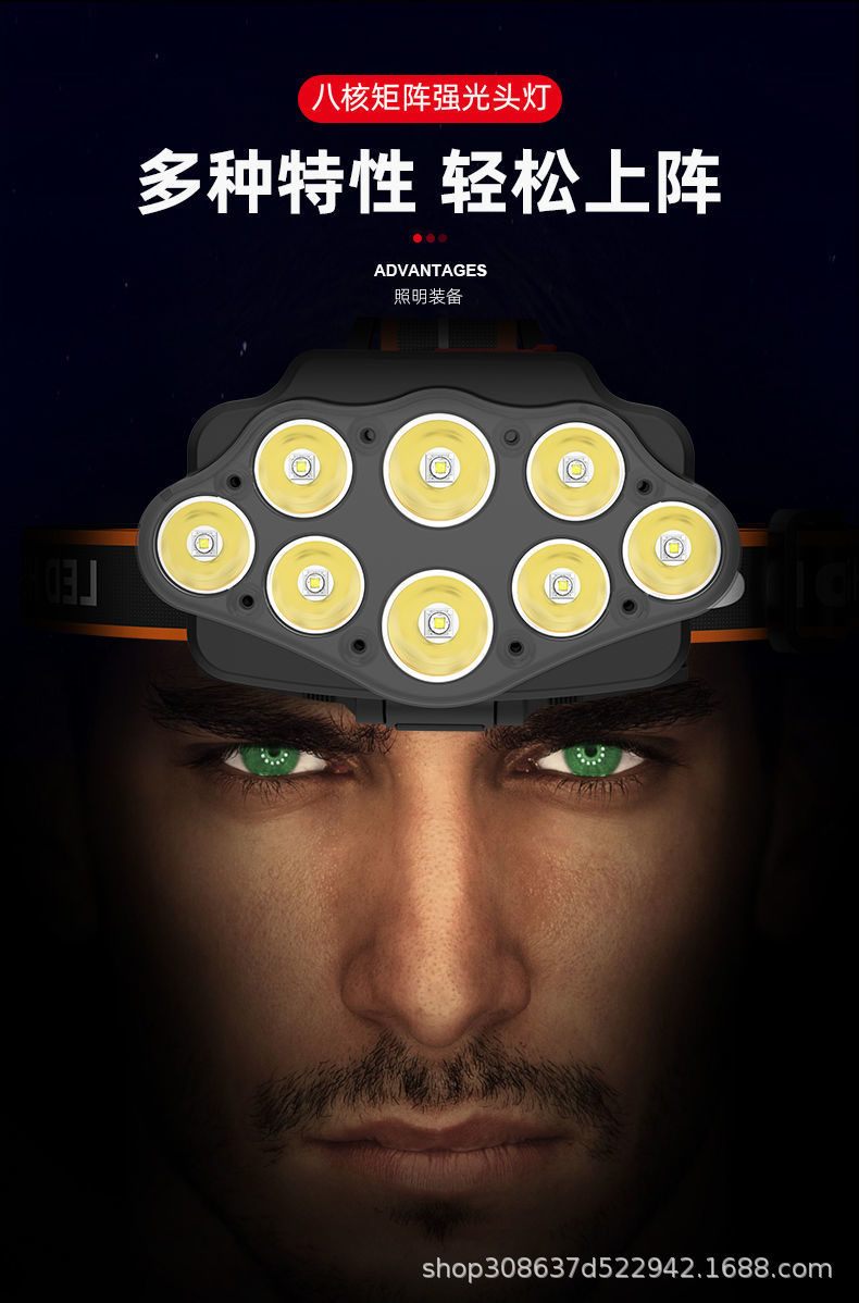 8 헤드 코어 강력 조명 슈퍼 브라이트 헤드라이트 USB 충전식 야외 초장거리 대기 듀얼 리튬 이온 헤드 마운트 손전등스토어 가기