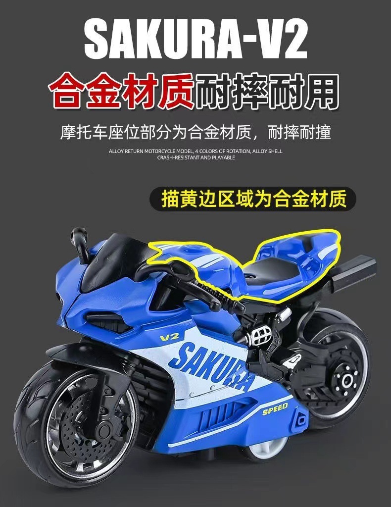 국경 간 미니 합금 오토바이 뒤 오토바이 시뮬레이션 모델 소형 장난감 자동차 어린이 장난감 장식품 도매스토어 가기