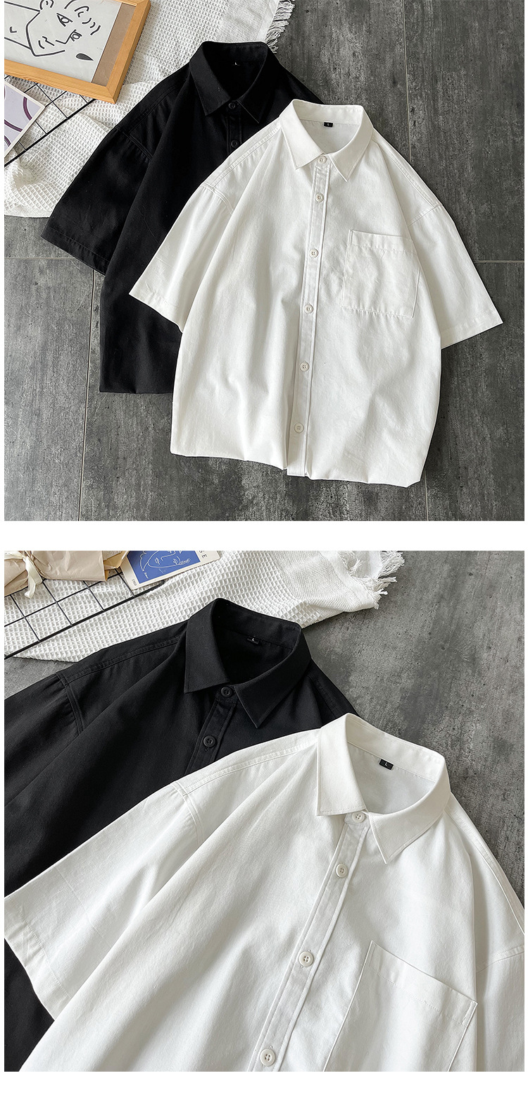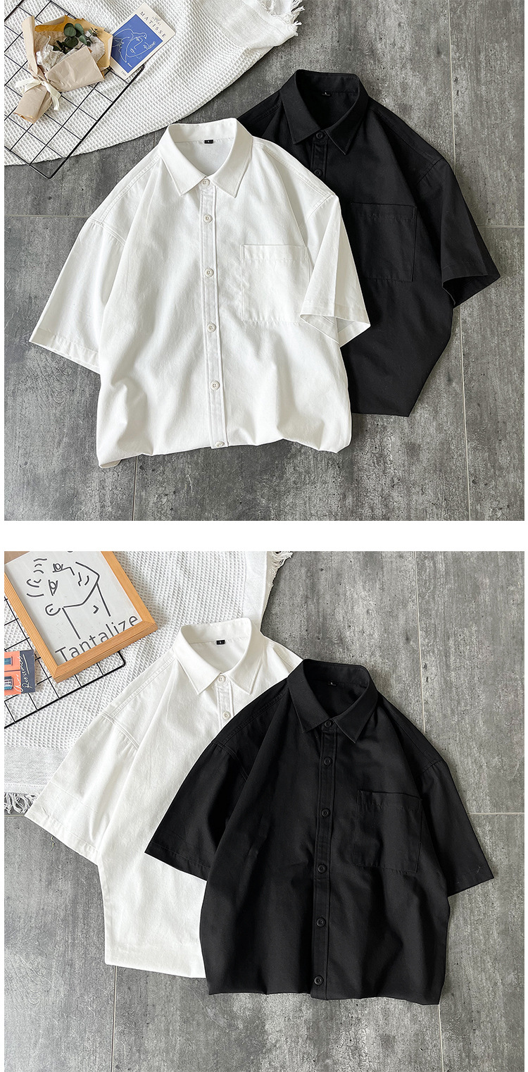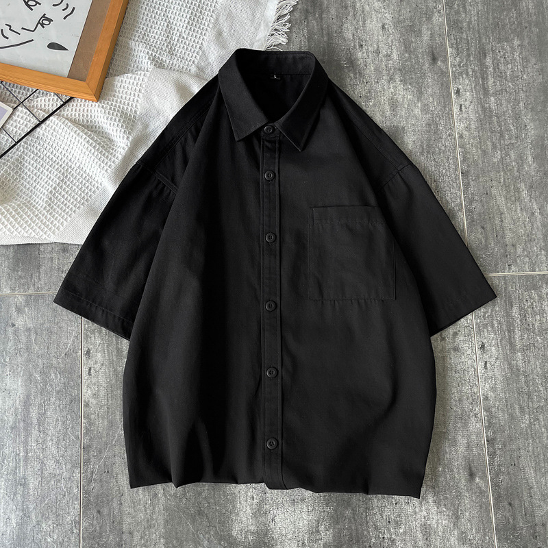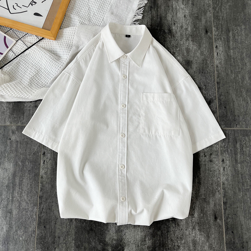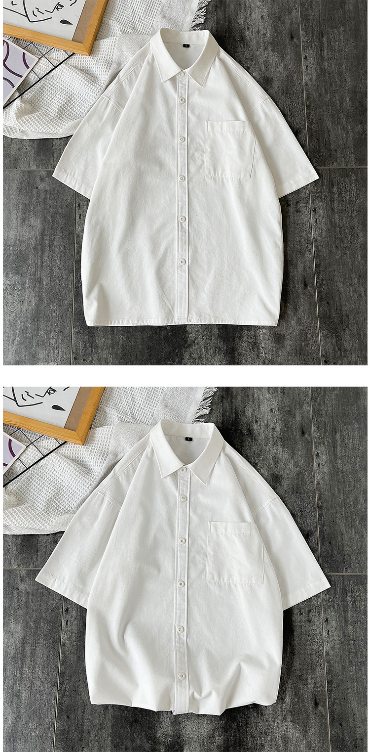 순면 반팔 셔츠 남자의 여름 루즈한 플러스 사이즈 캐주얼 모든 매치 단색 대학 스타일 셔츠 트렌디 한 겉옷 탑