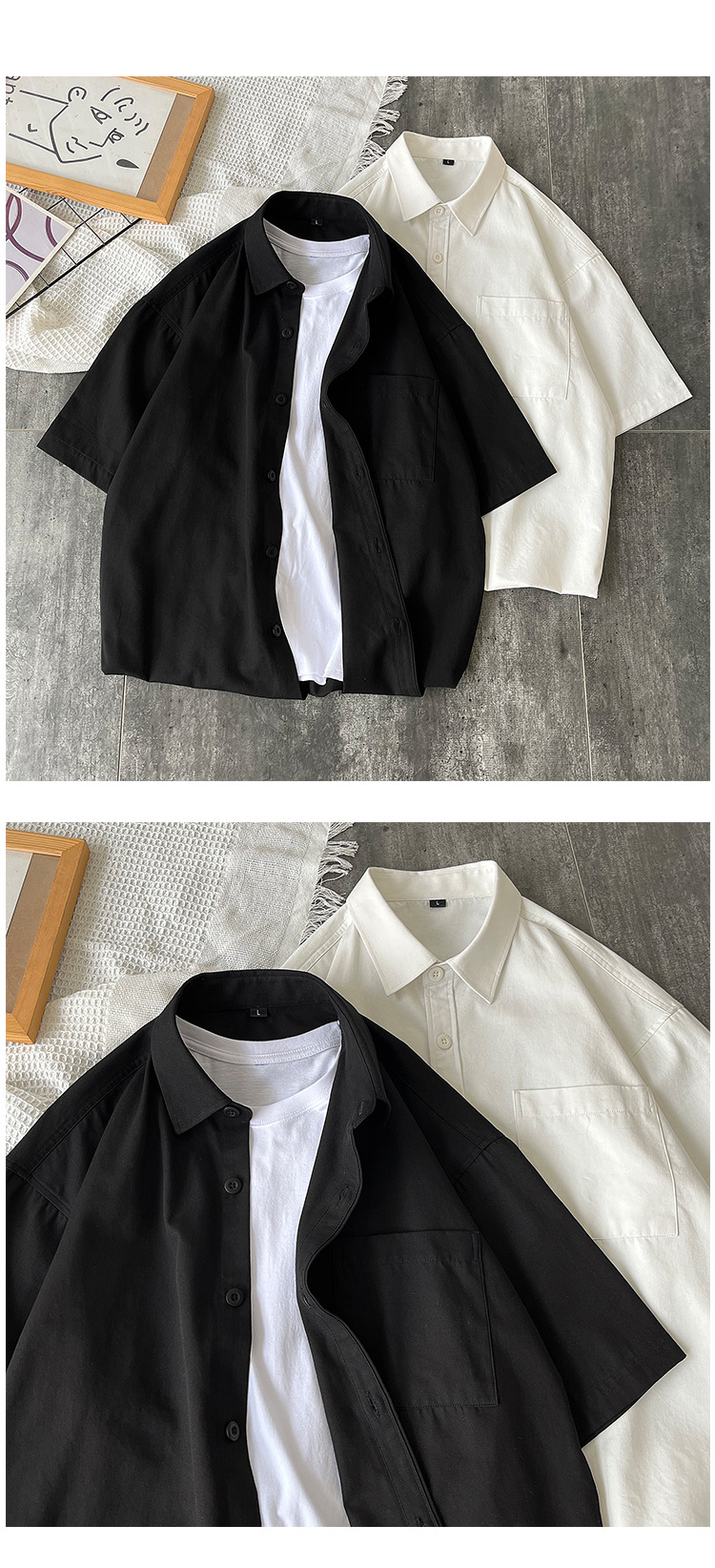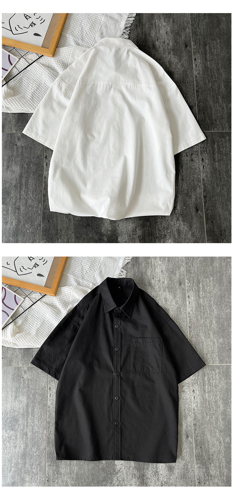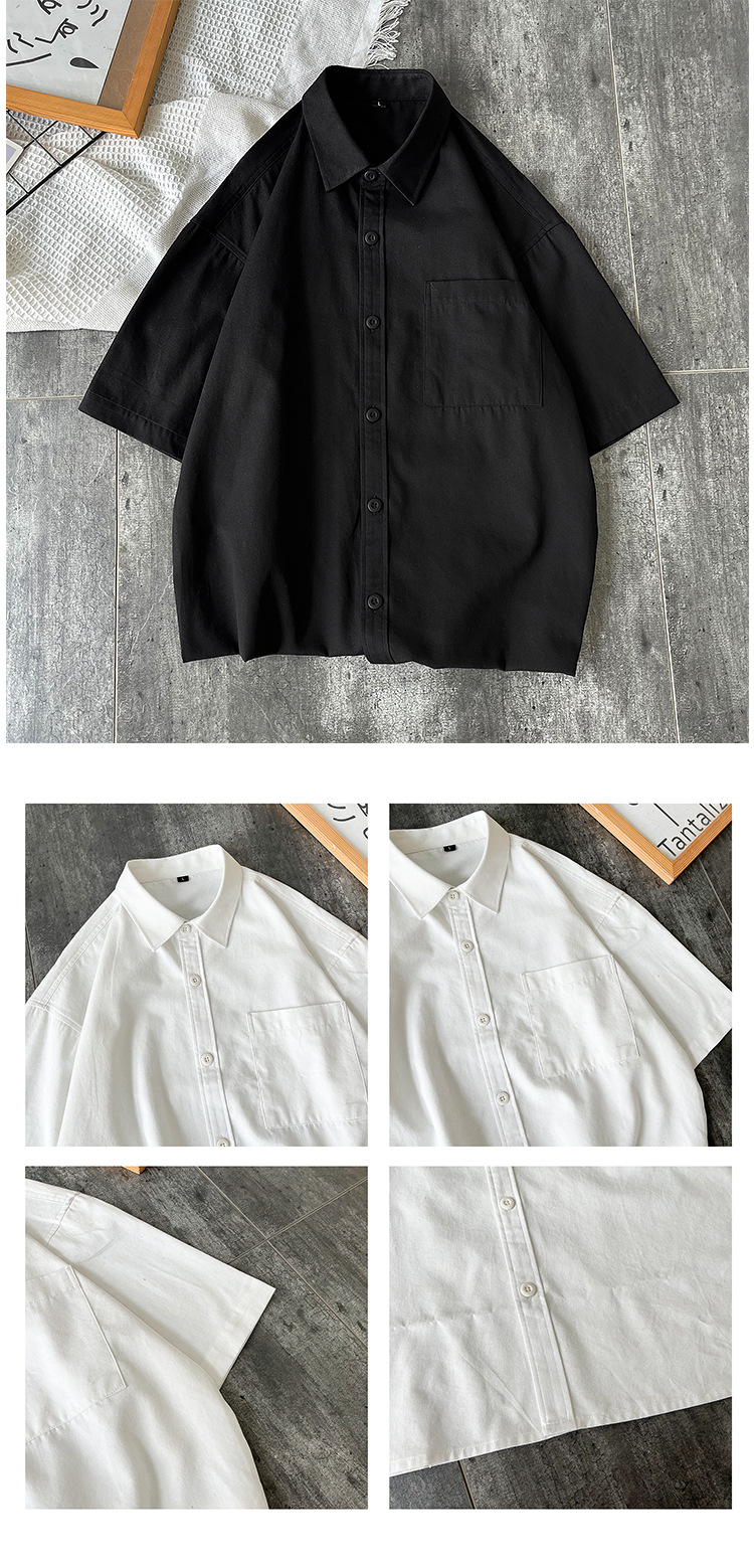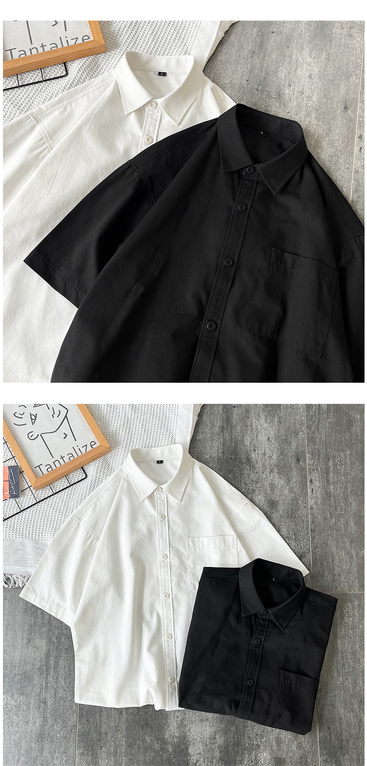순면 반팔 셔츠 남자의 여름 루즈한 플러스 사이즈 캐주얼 모든 매치 단색 대학 스타일 셔츠 트렌디 한 겉옷 탑