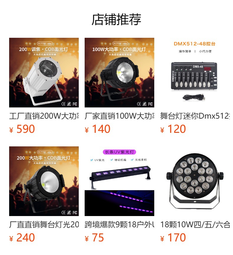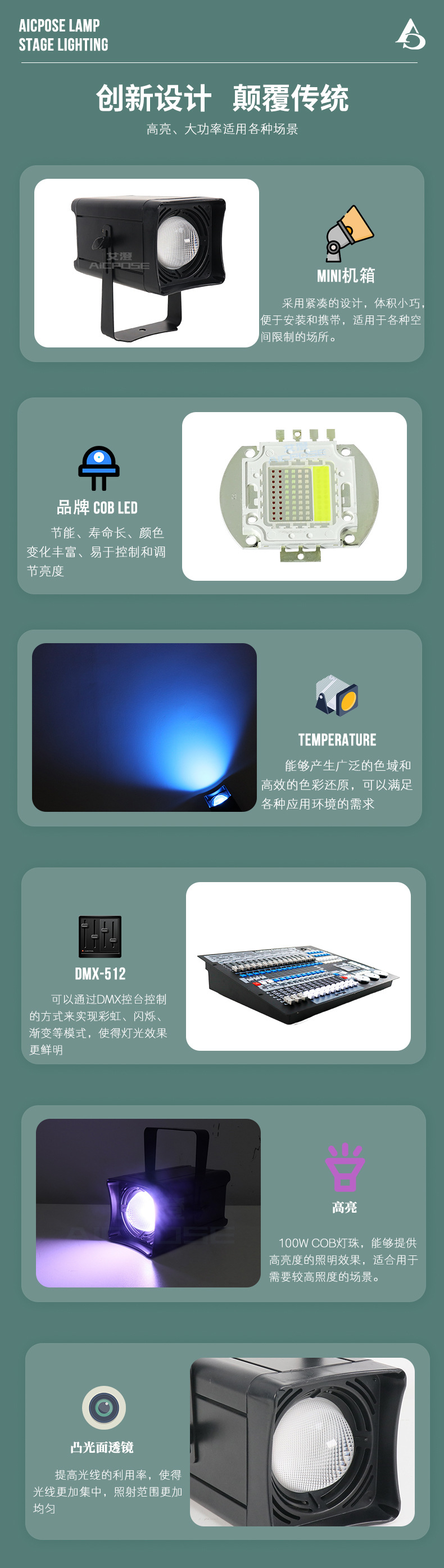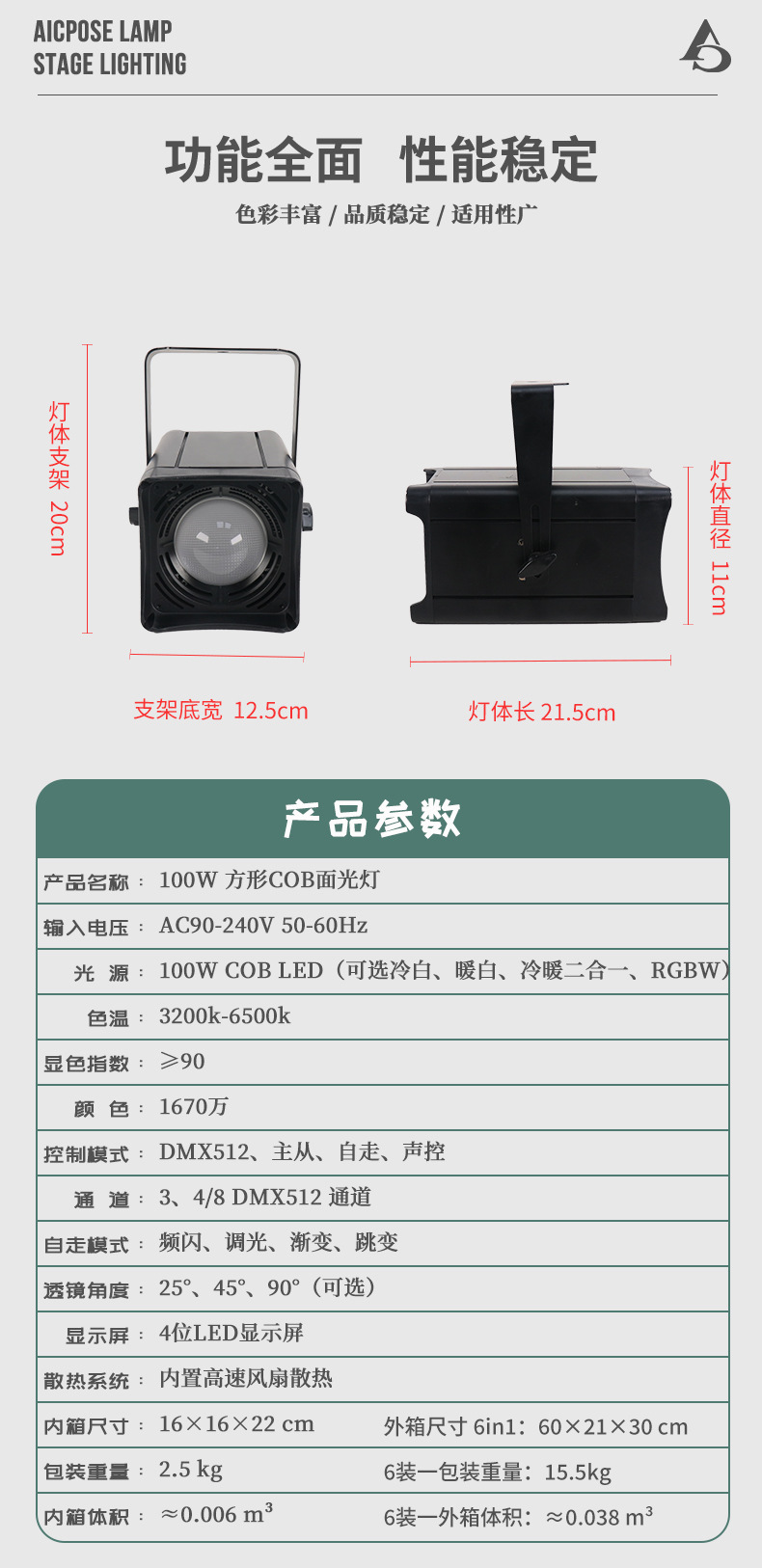 공장 직통 COB 표면등 100W 사각 무대등 사진촬영등 웨딩바 KTV 콘서트스토어 가기