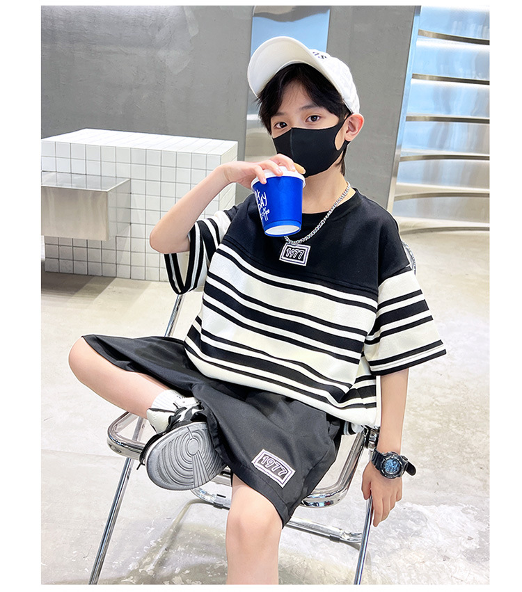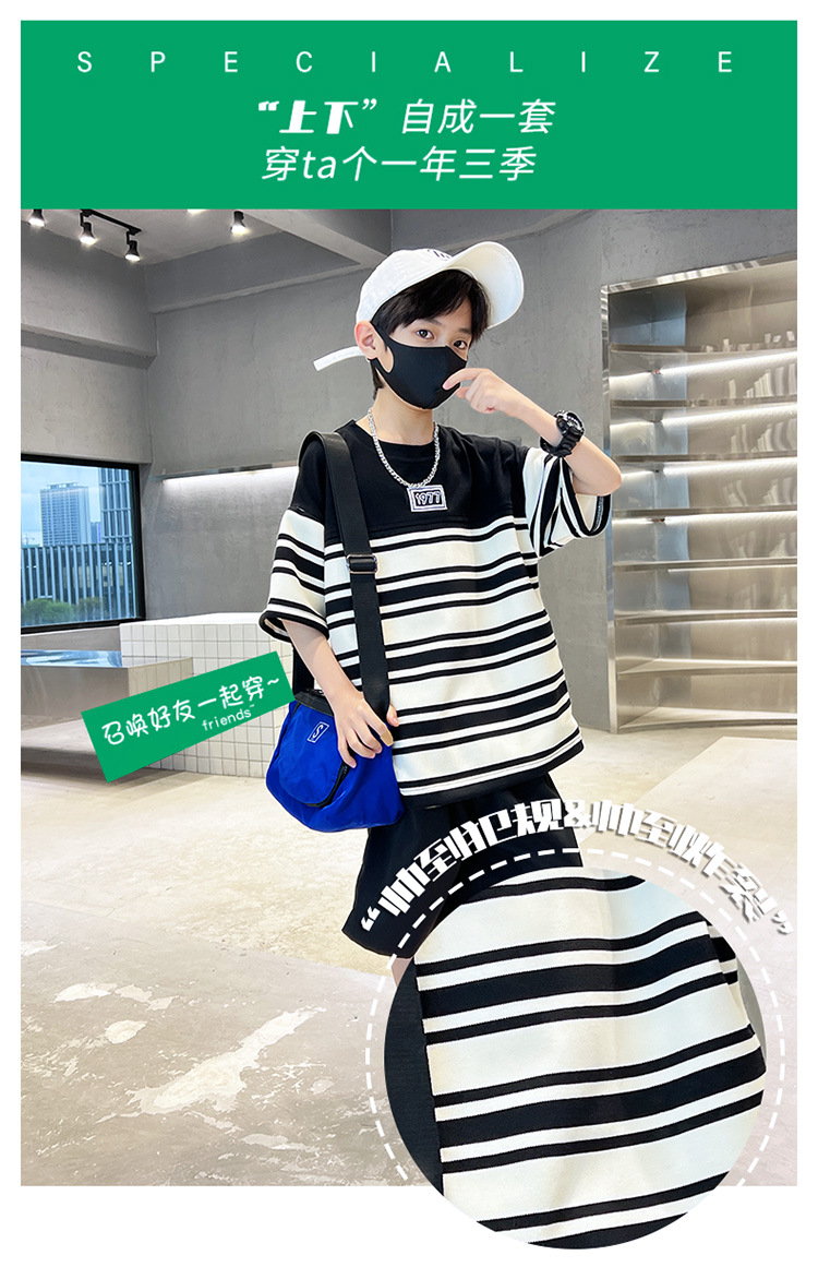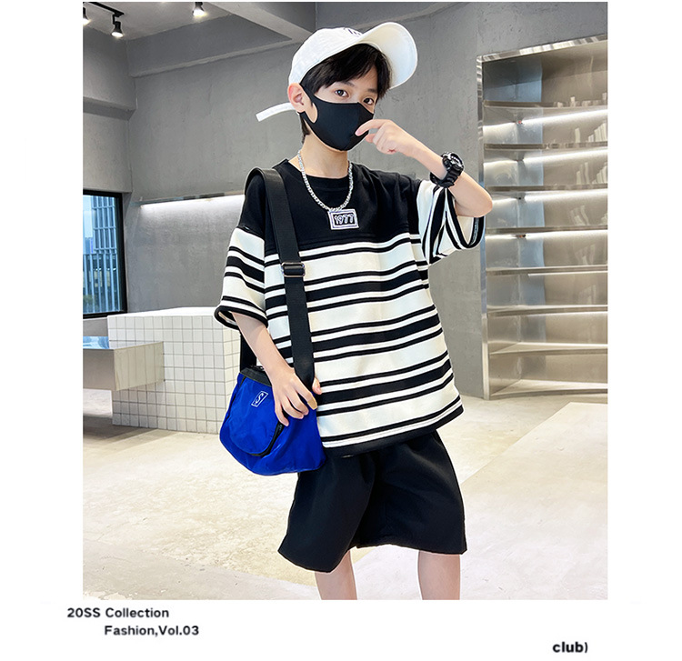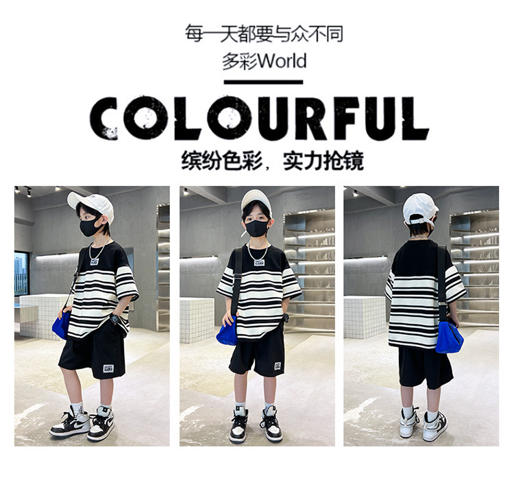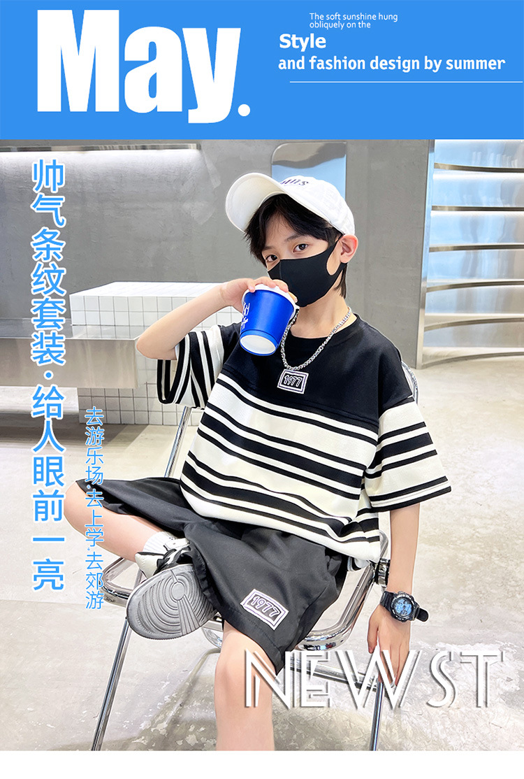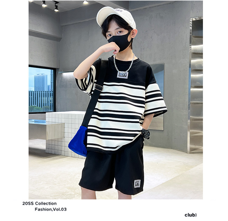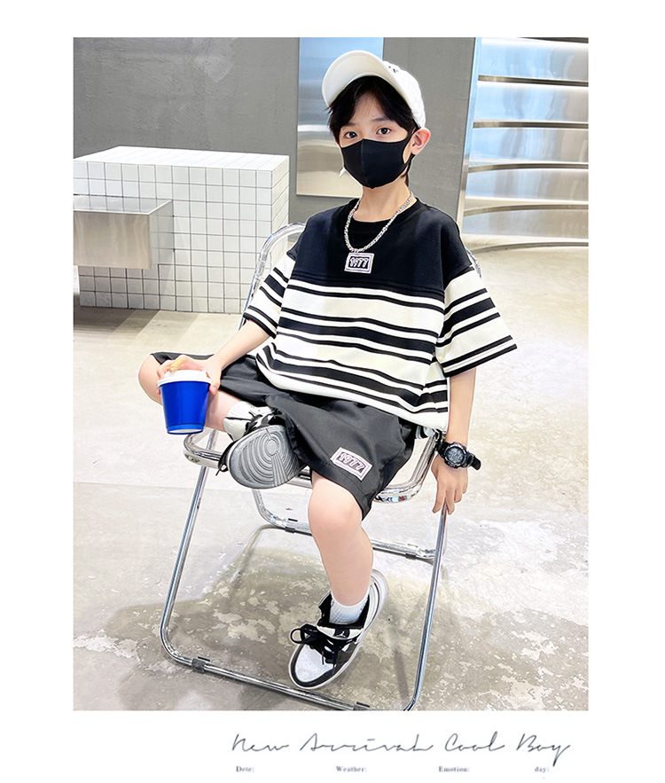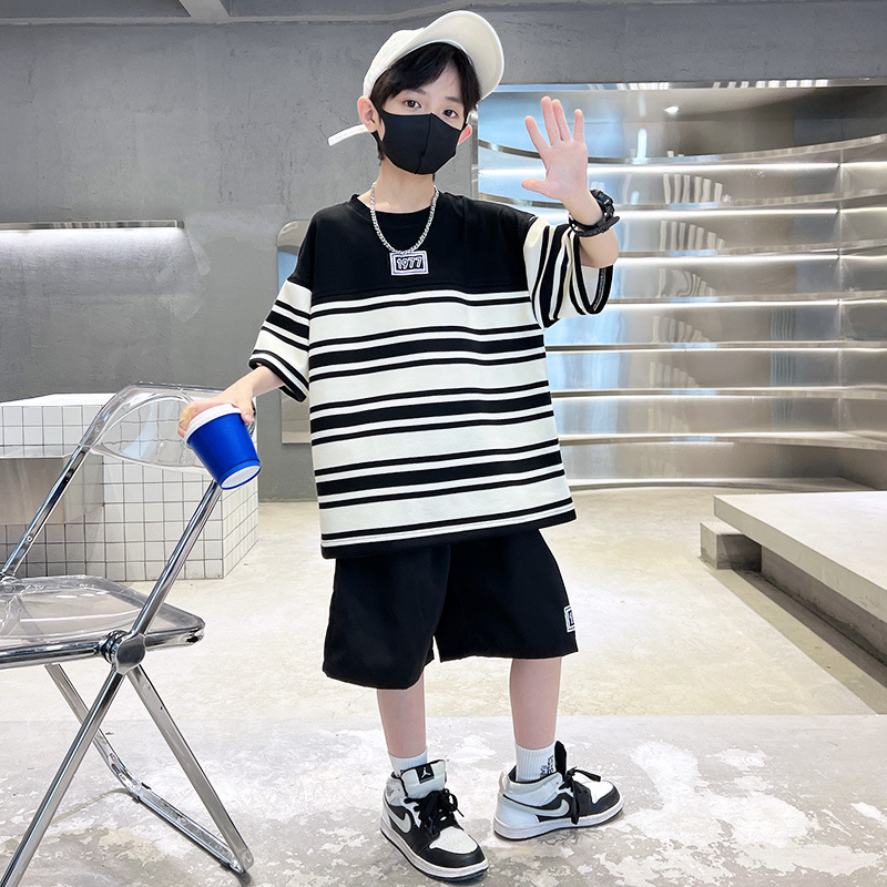 어린이 세트 여름 새 소년 스트라이프 반팔 투피스 2023 어린이 스포츠 패션 세트 머리카락 세대스토어 가기