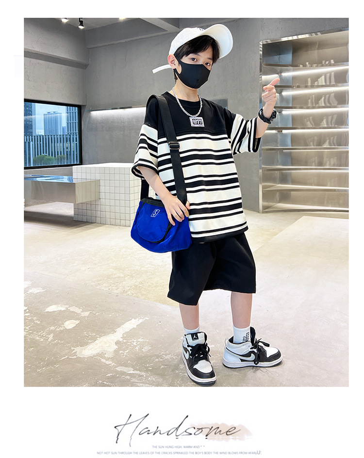 어린이 세트 여름 새 소년 스트라이프 반팔 투피스 2023 어린이 스포츠 패션 세트 머리카락 세대