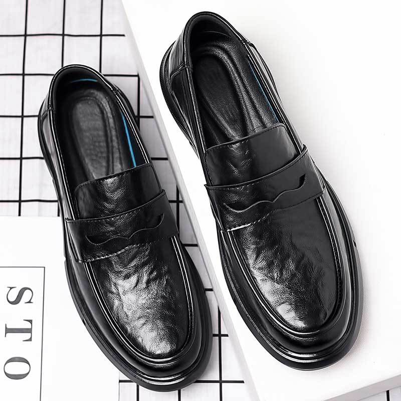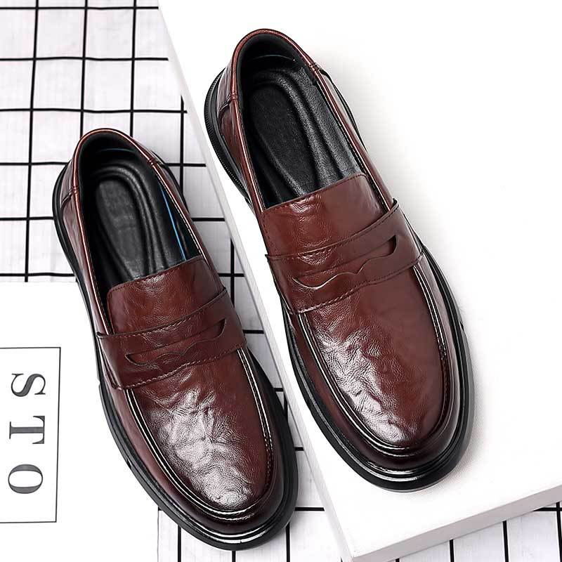 캐주얼 가죽 신발 남자의 봄 라이브 방송 영국 비즈니스 원피스 손 스크래치 패턴 부드러운 가죽 부드러운 바닥 남자의 가죽 신발