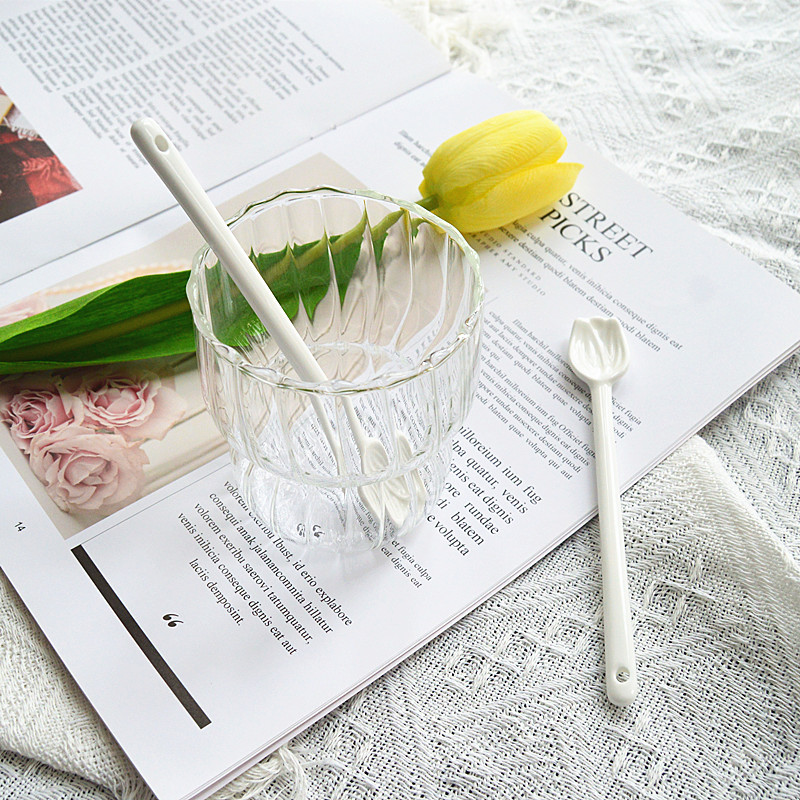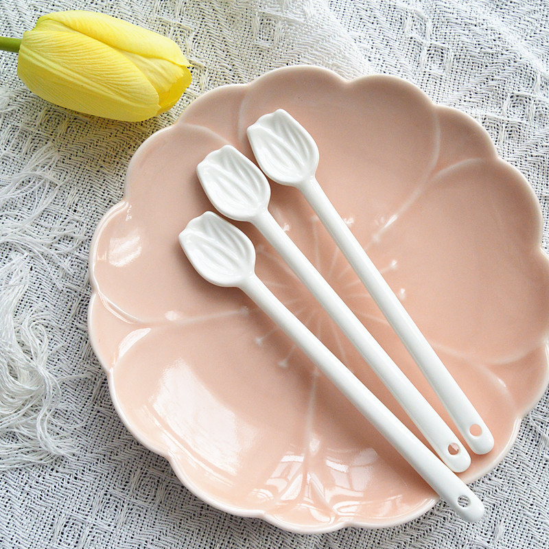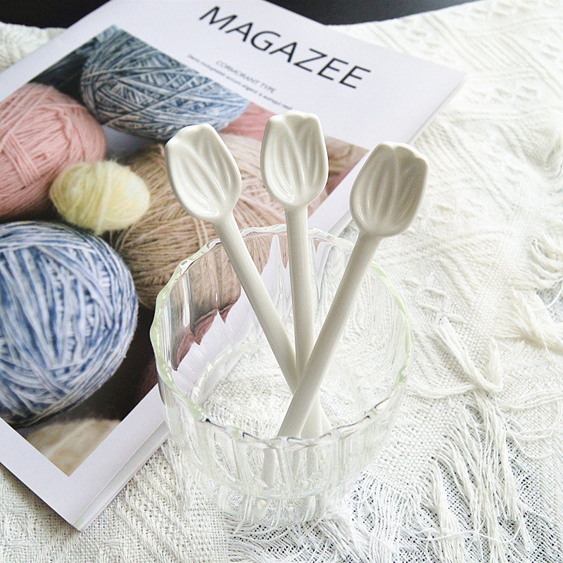 인스 홈 튤립 스푼 창의적인 세라믹 믹싱 스푼 작은 스푼 귀여운 커피 스푼 라이트 럭셔리 선물 세트