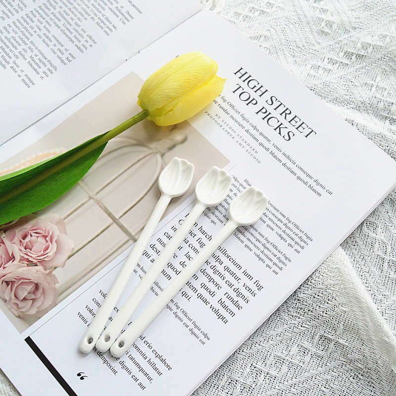 인스 홈 튤립 스푼 창의적인 세라믹 믹싱 스푼 작은 스푼 귀여운 커피 스푼 라이트 럭셔리 선물 세트스토어 가기