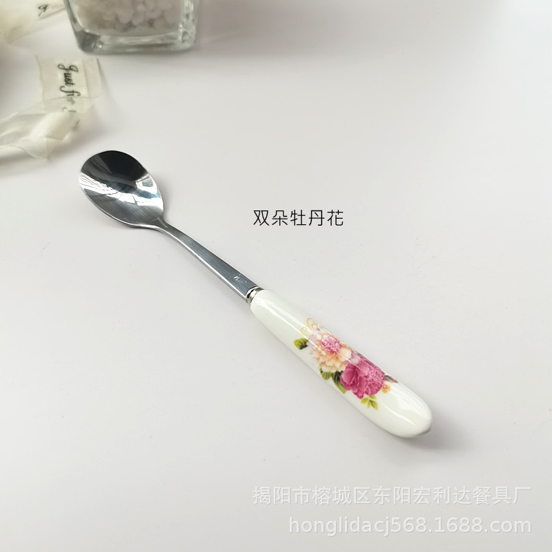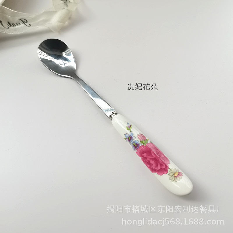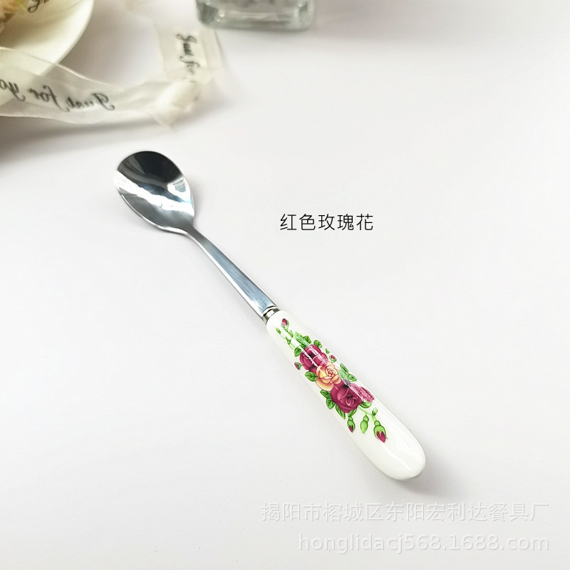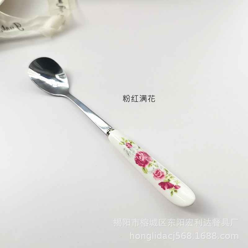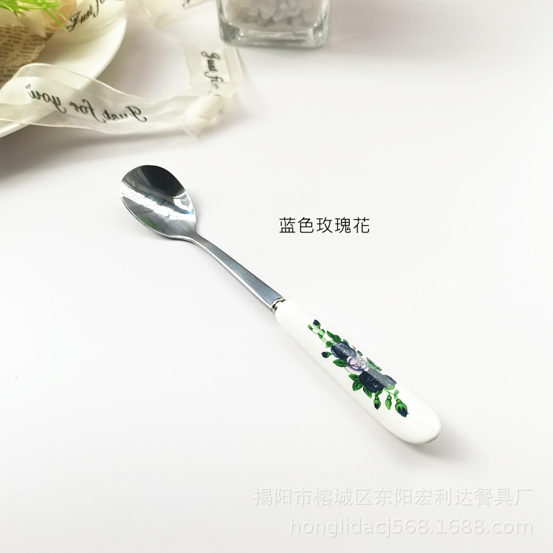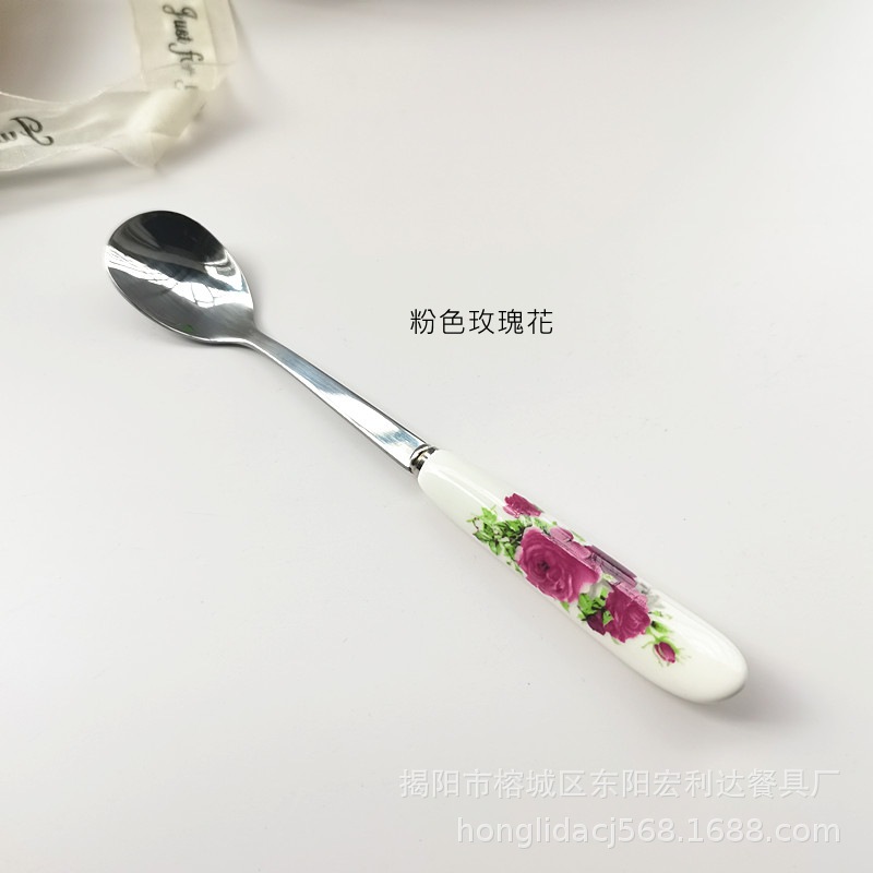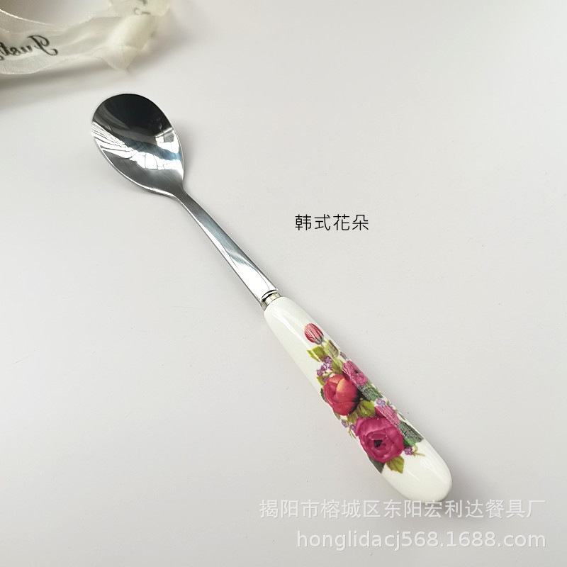 제조업체 도매 410 스테인리스 식기 인스 스타일 세라믹 커피 스푼 귀여운 믹싱 스푼 조미료 스푼