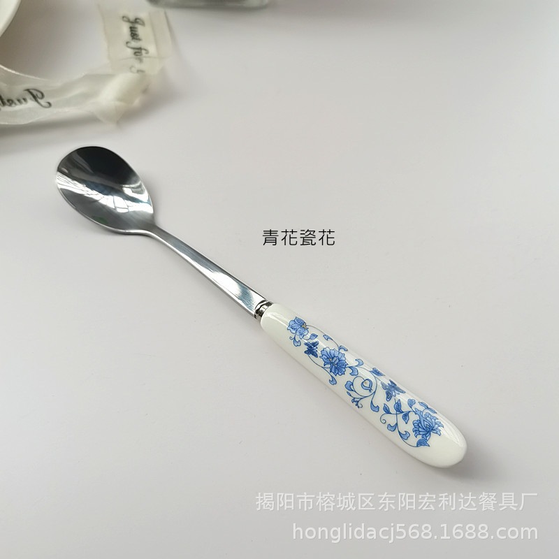제조업체 도매 410 스테인리스 식기 인스 스타일 세라믹 커피 스푼 귀여운 믹싱 스푼 조미료 스푼스토어 가기