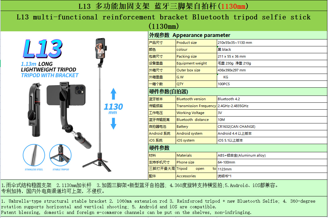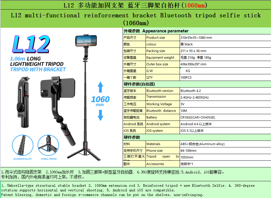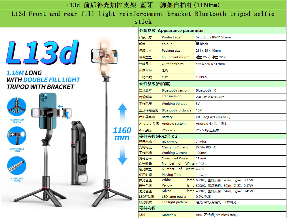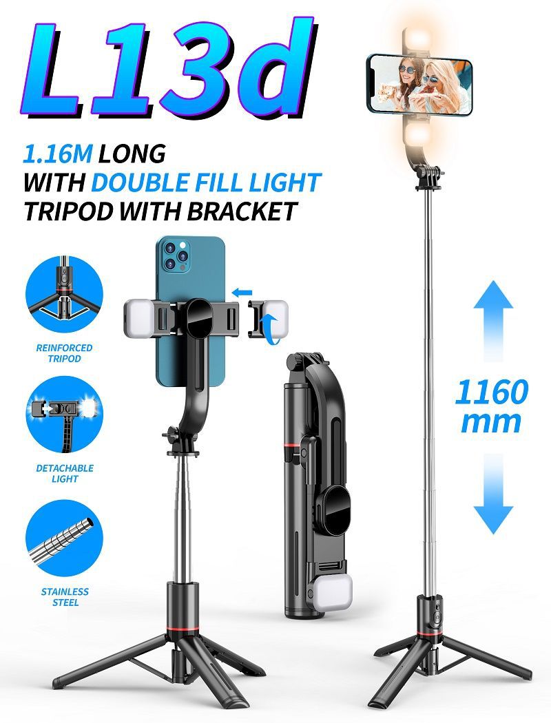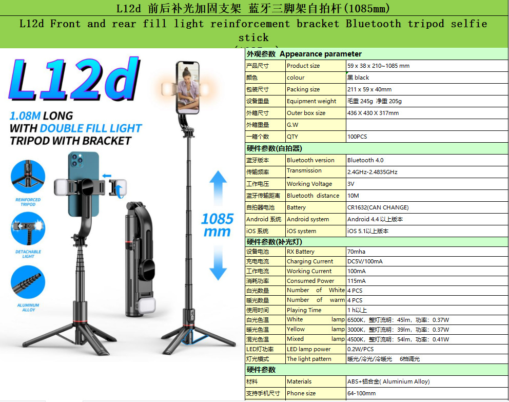 휴대 전화 블루투스 셀카 스틱 라이브 L12d 채우기 빛 아름다움 떨림 길쭉한 데스크탑 브래킷 삼각대 도매