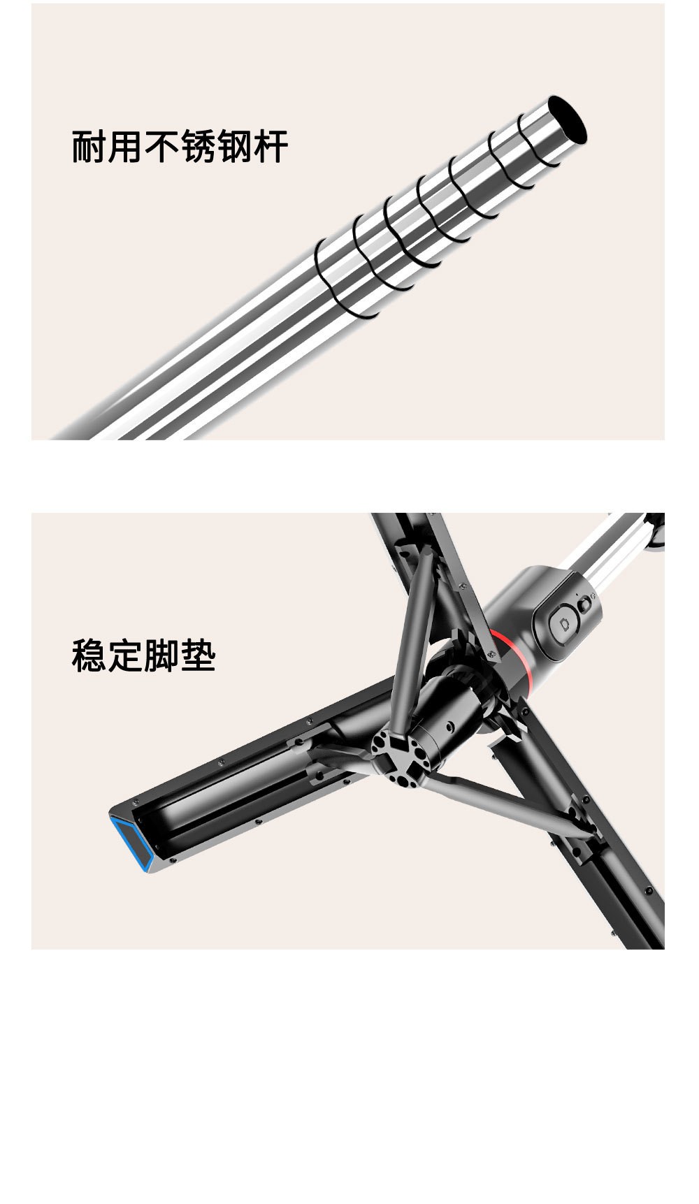 • L13D-1.1m 더블 라이트 셀카 스틱 (스테인레스 스틸 막대 우산 해골) 블랙