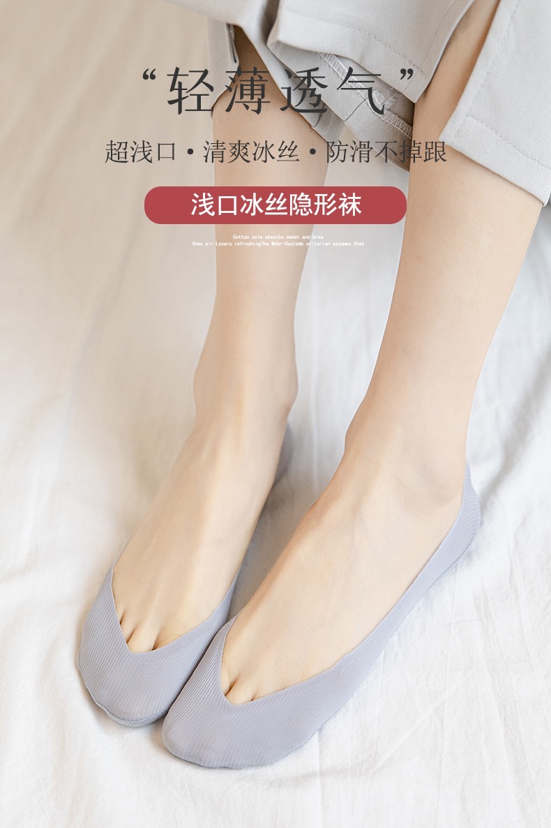 여성용 양말 아이스 실크 보트 양말 여름 얇은면 바닥 낮은 탑 얕은 입 보이지 않는 양말 땀 흡수 미끄럼 방지 뒤꿈치 양말스토어 가기