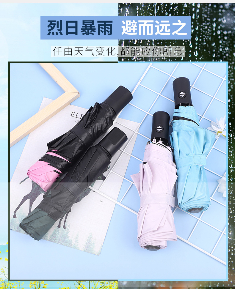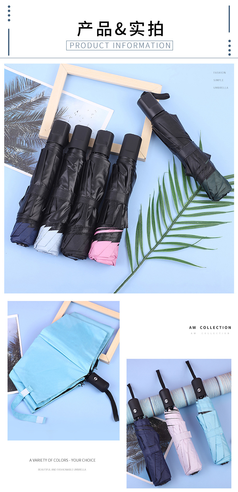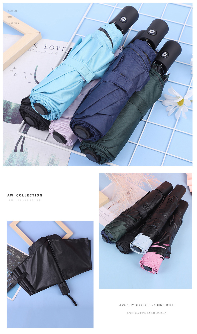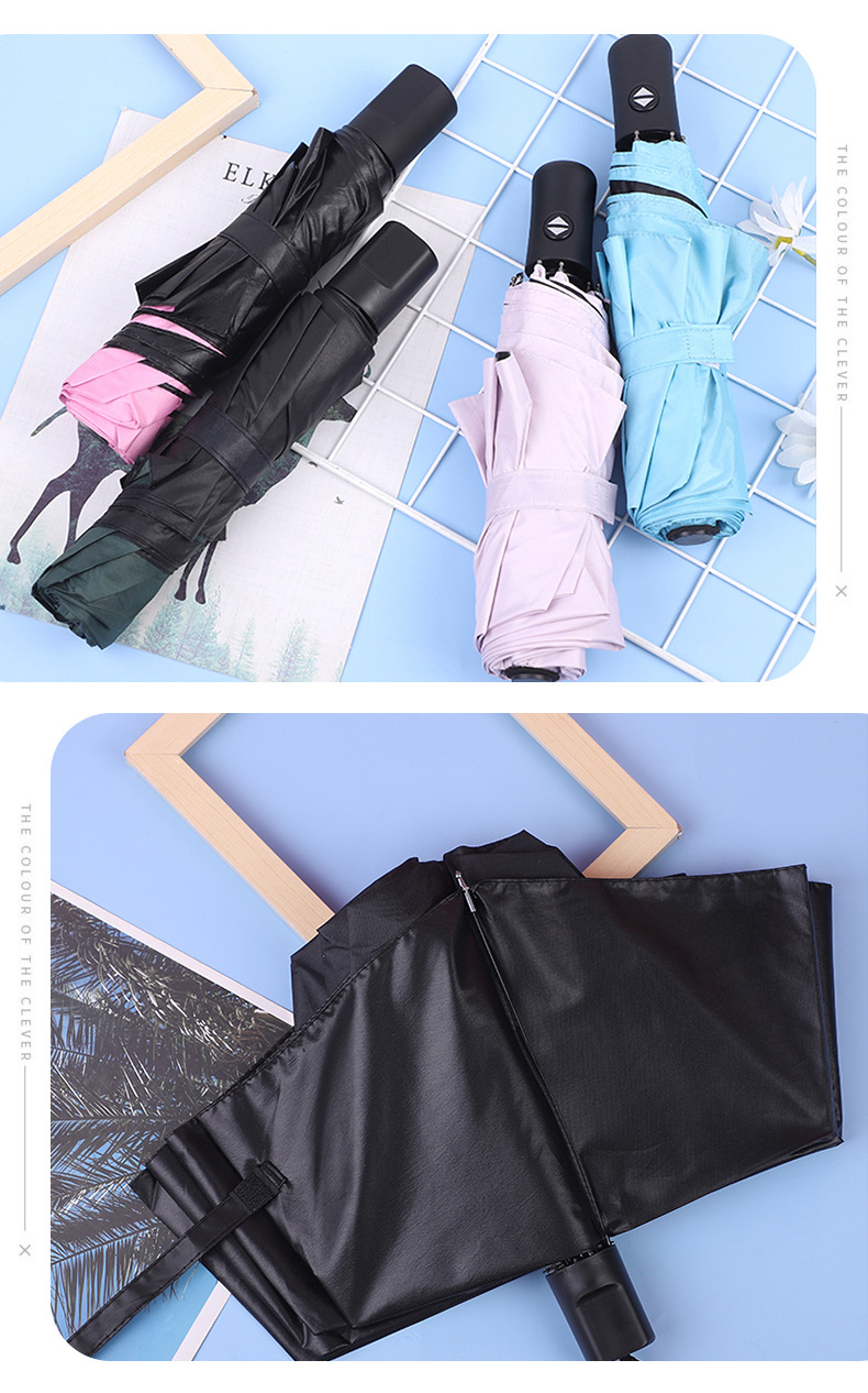 우산 접는 검은 고무 자동 UV 우산 차양 우산 햇빛과 비 이중 사용 자외선 차단제 우산 UV 보호 고정 로고