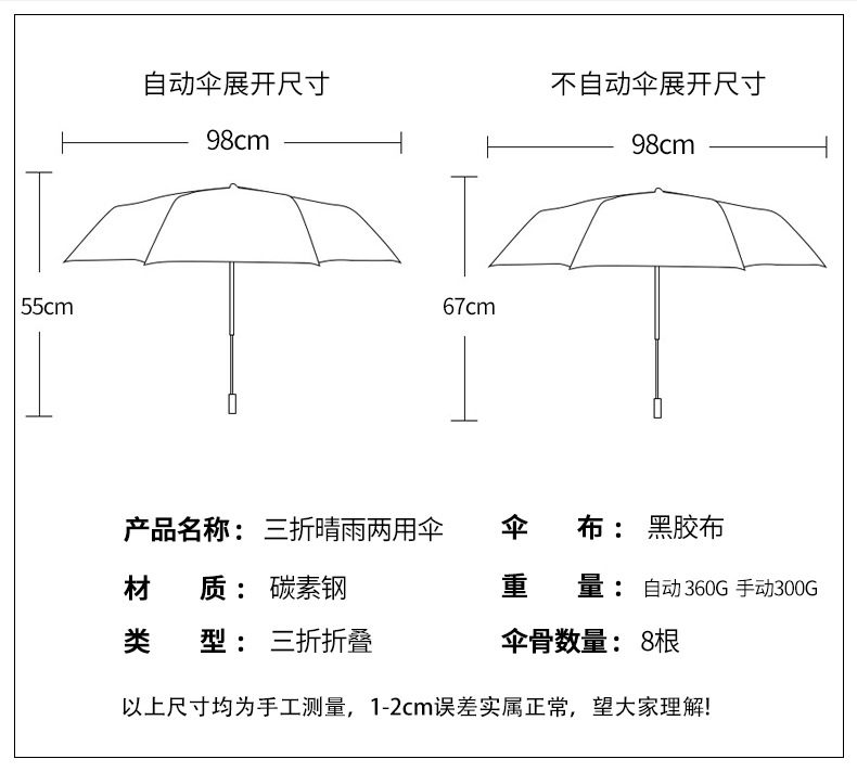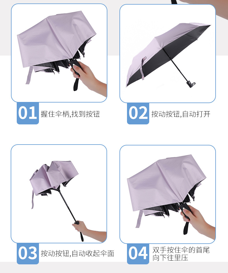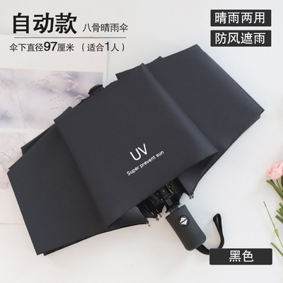 우산 접는 검은 고무 자동 UV 우산 차양 우산 햇빛과 비 이중 사용 자외선 차단제 우산 UV 보호 고정 로고스토어 가기