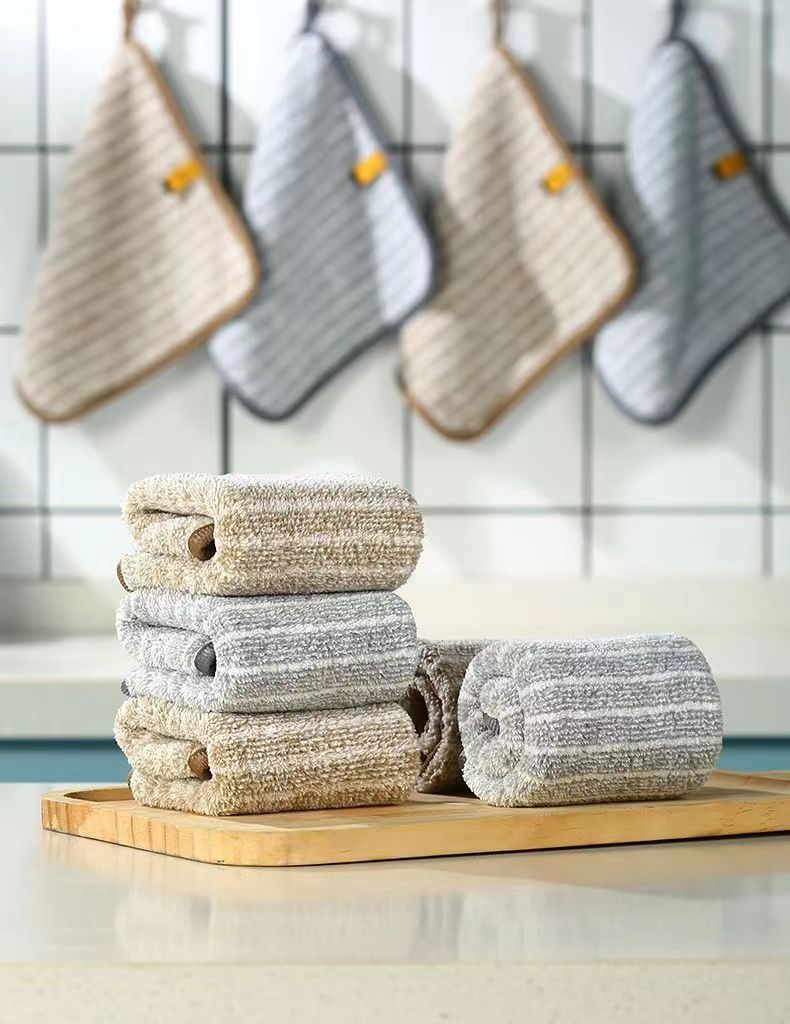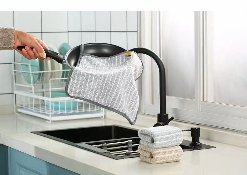 일본식 대나무 숯 줄무늬 걸레 탈지 식기 세척 천 가정용 청소 극세사 흡수 수세미 주방 도매스토어 가기