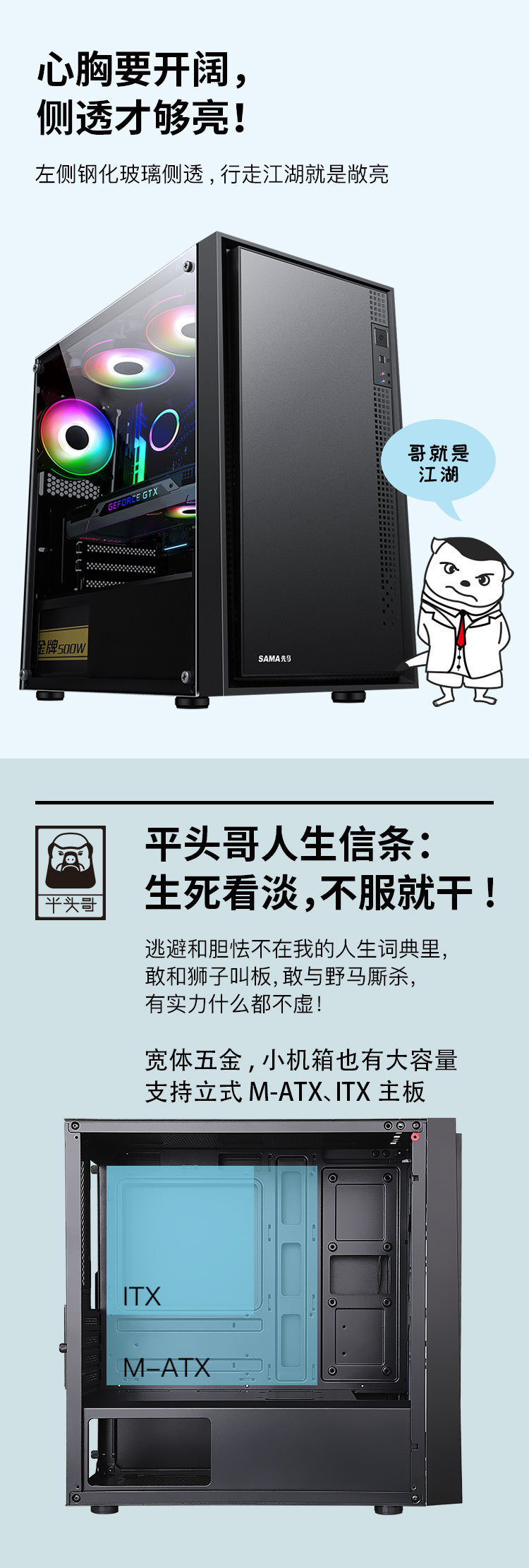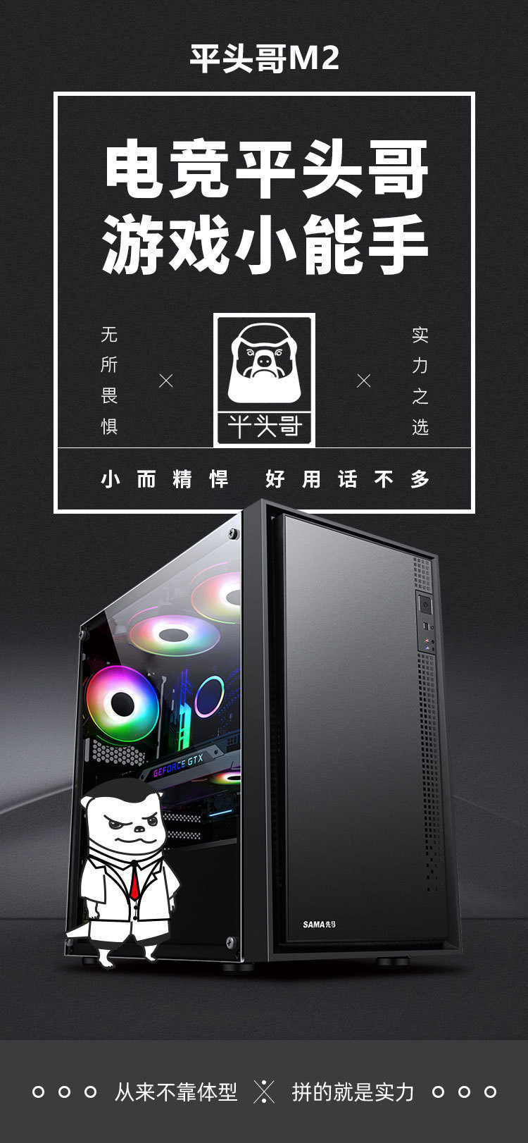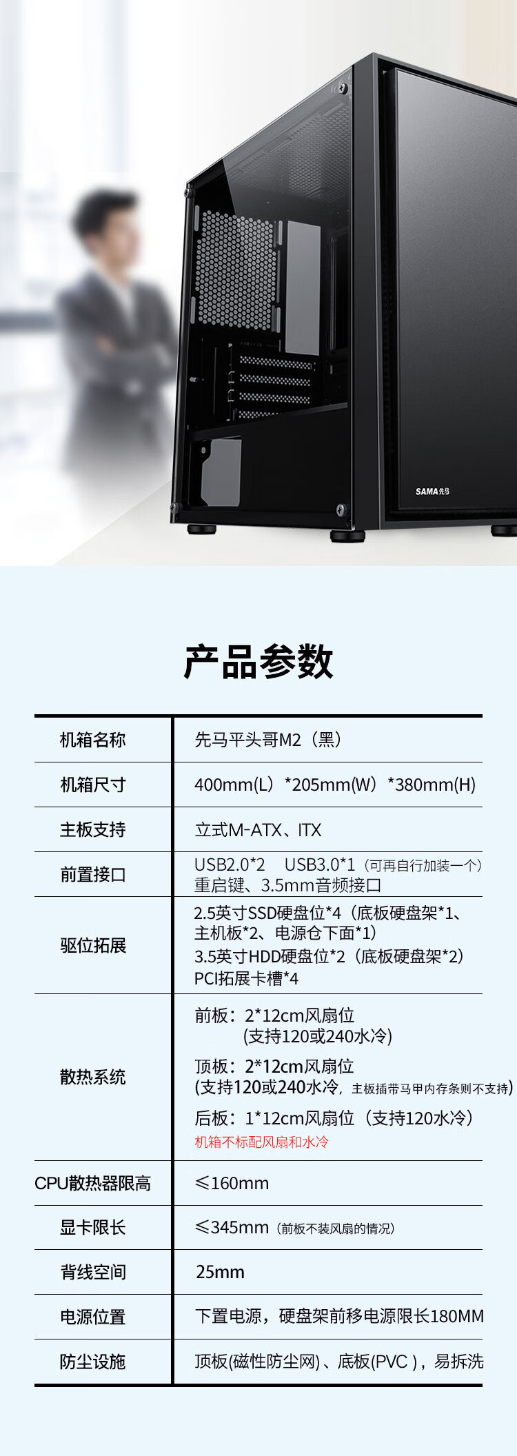MATX xianma SAMA 플랫 헤드 형제 M2 컴퓨터 케이스 데스크탑 작은 케이스 유리 측면 투명
