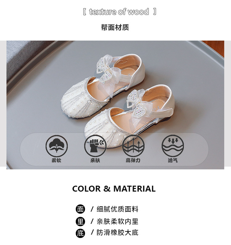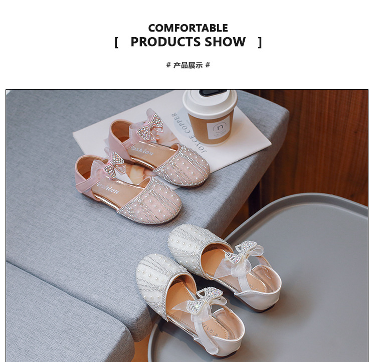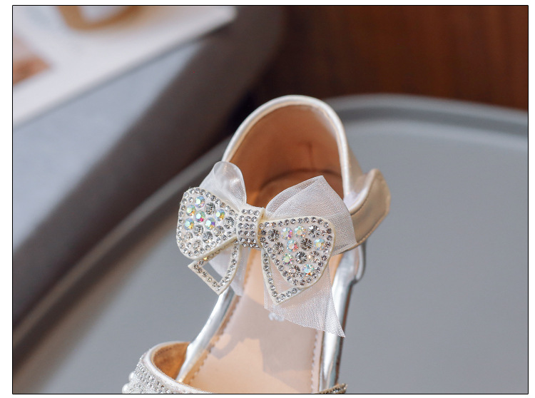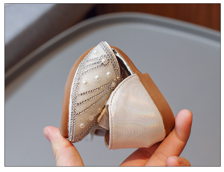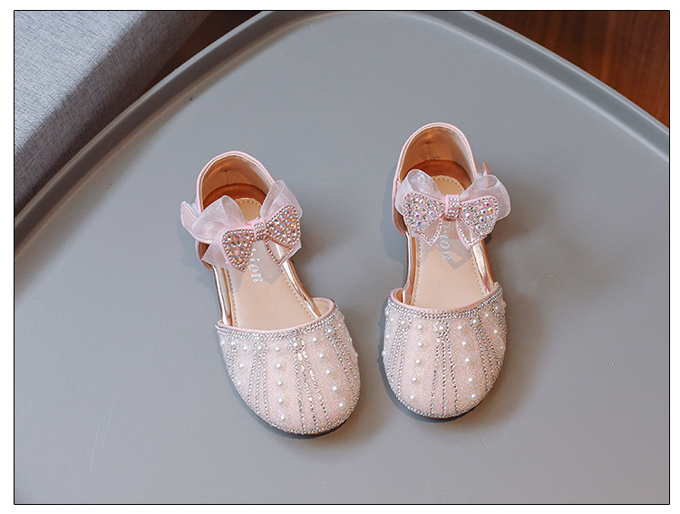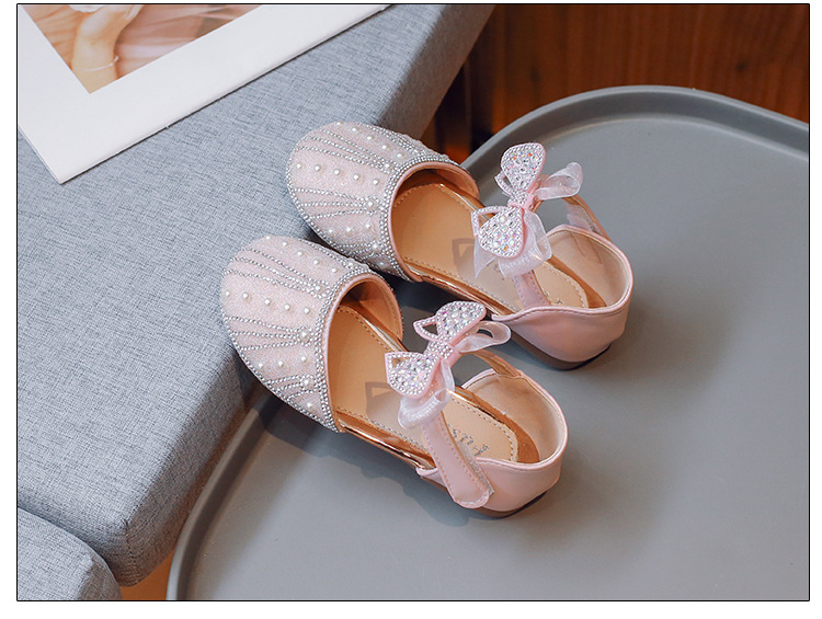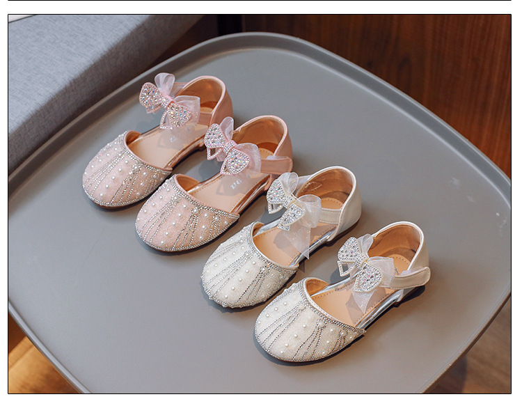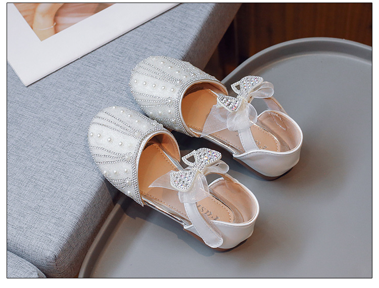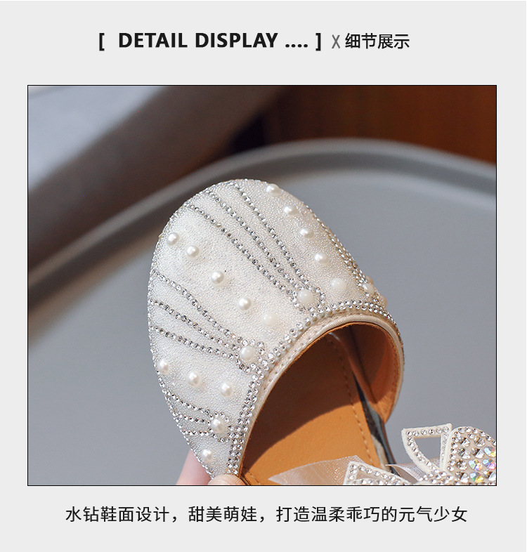 여아 공주 반샌들 2025 여름 신상 어린이 귀여운 리본 반짝이는 진주와 크리스탈 공연 신발스토어 가기