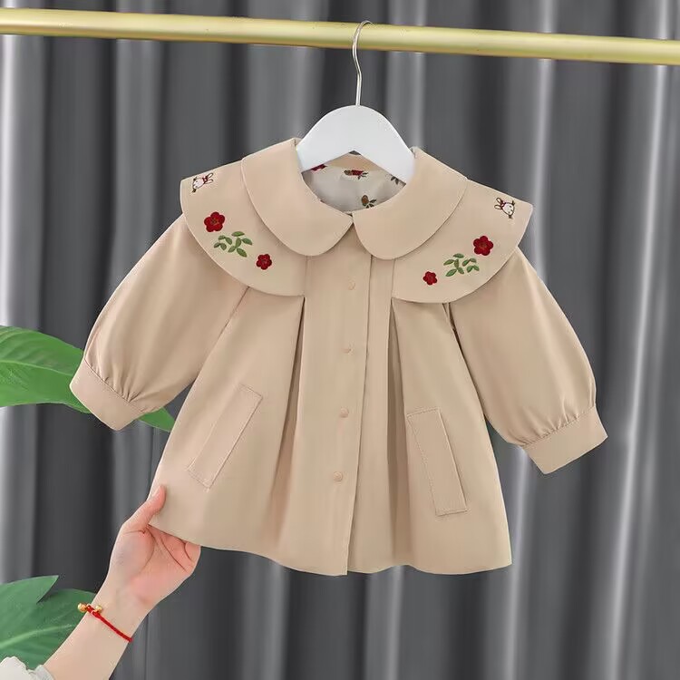 봄 가을 2023 새로운 아동 코트 코트 한국식 영국식 여아 중간 길이 코트