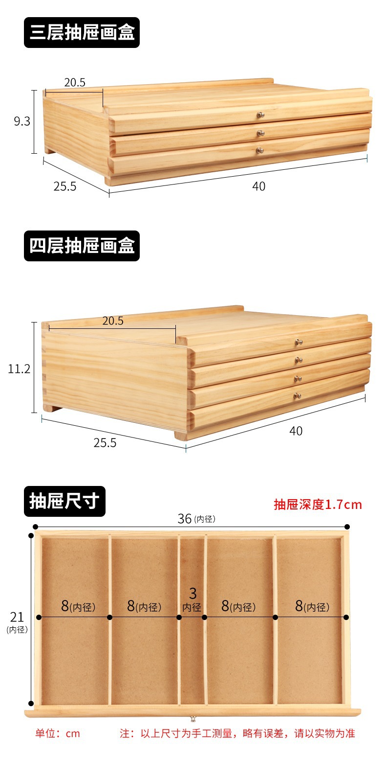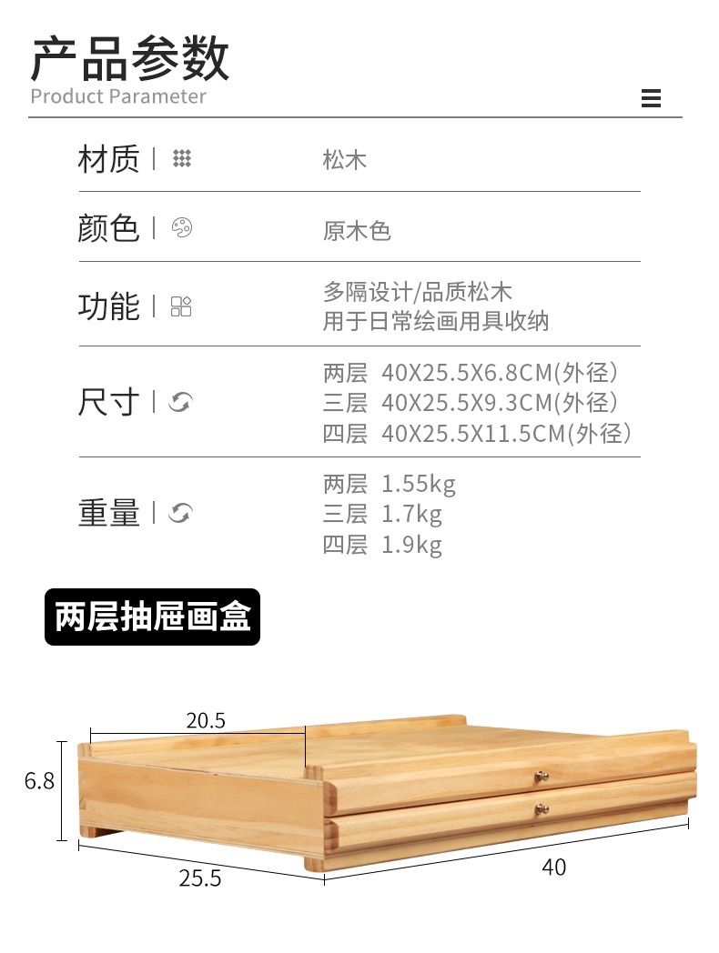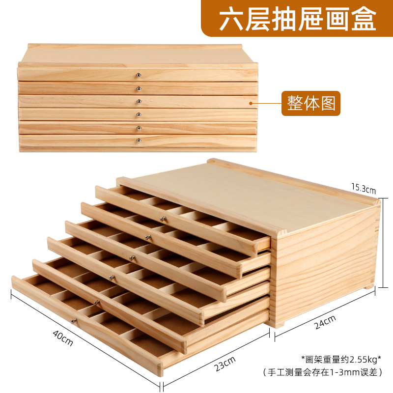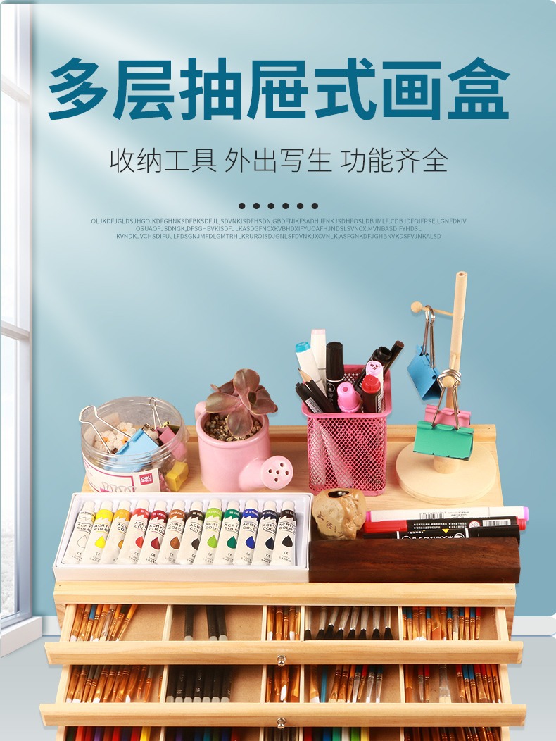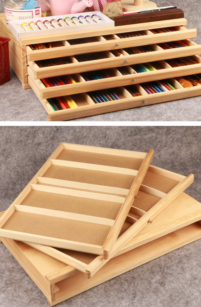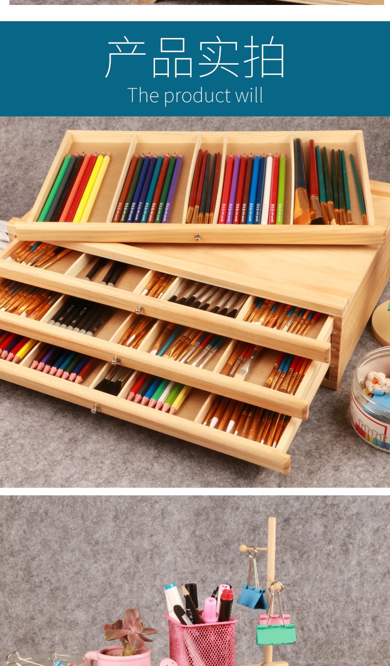 휴대용 소나무 마커 저장 상자 그림 상자 연필 아트 브러시 다층 서랍 브러시 보관 상자스토어 가기