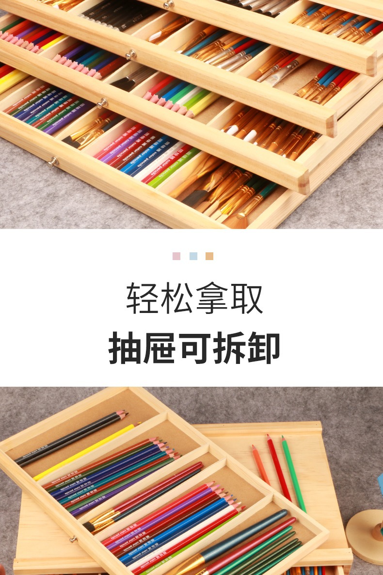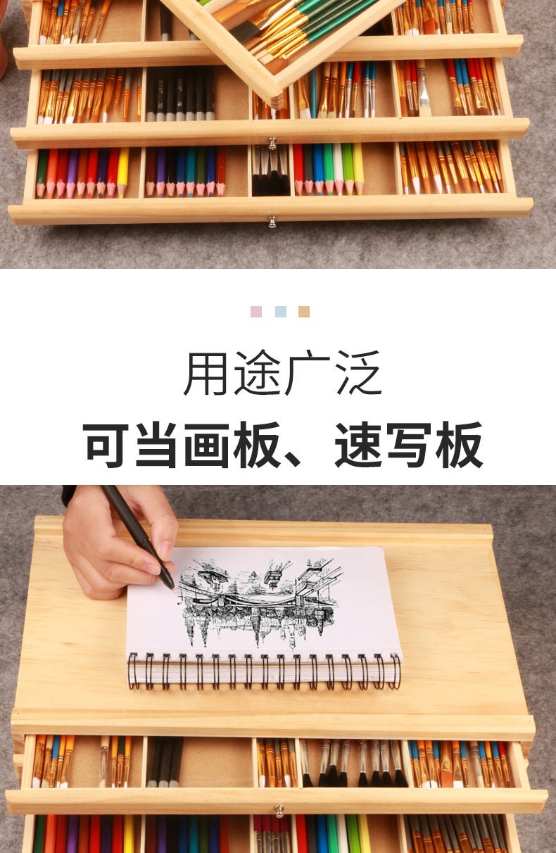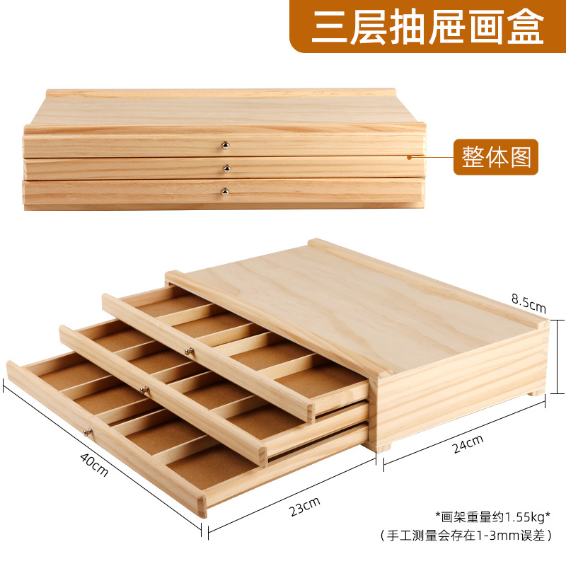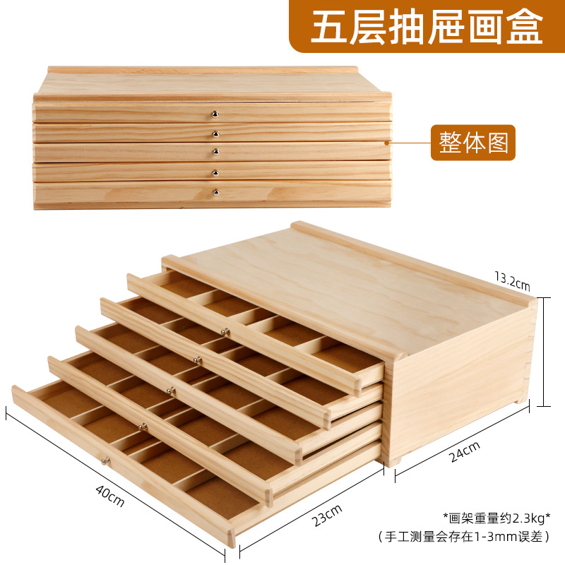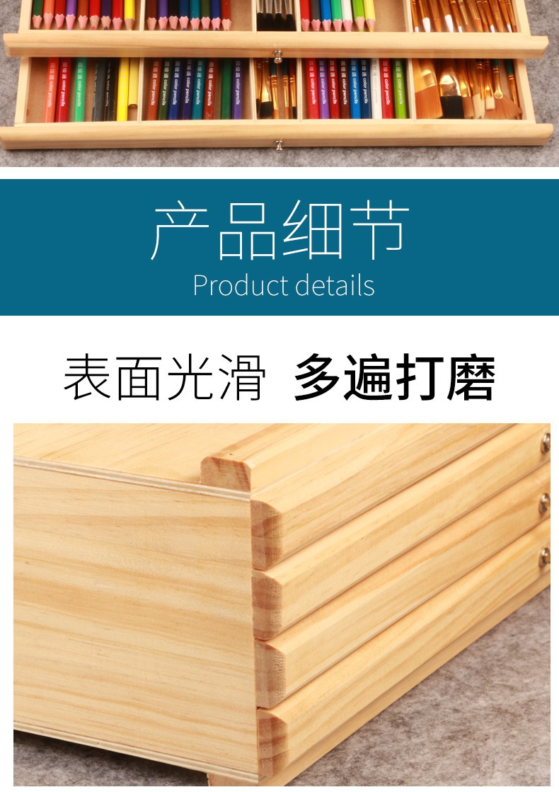 휴대용 소나무 마커 저장 상자 그림 상자 연필 아트 브러시 다층 서랍 브러시 보관 상자