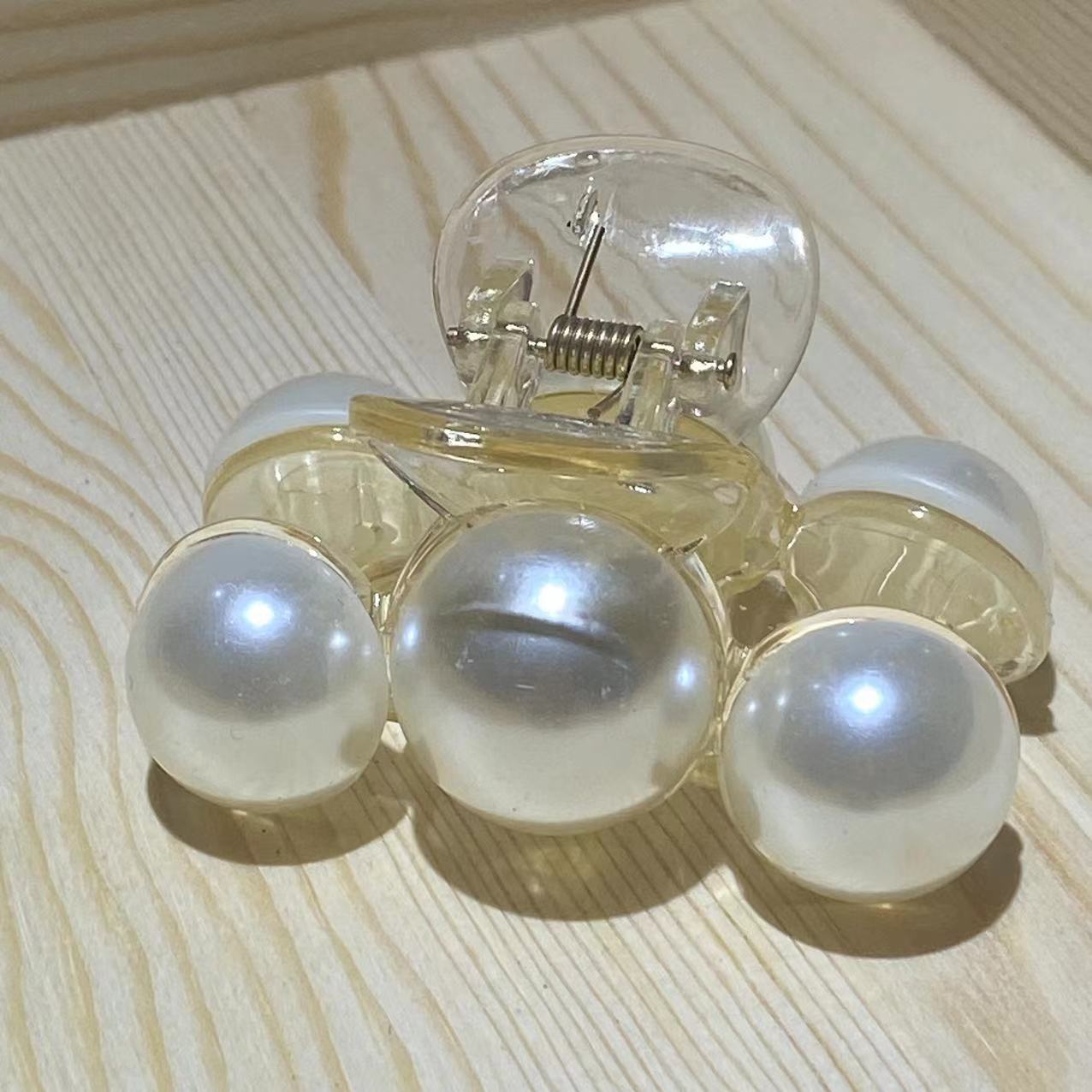 한국 레트로 투명한 진주 클립 한국 창조적 인 목욕 진주 머리핀 유행 투명한 컬러 클립