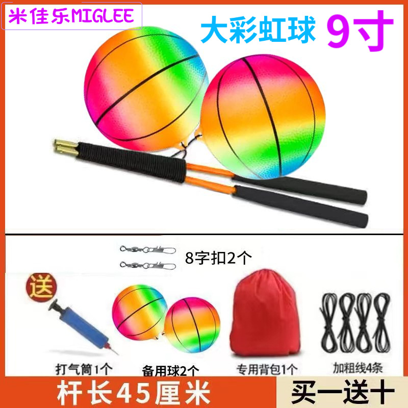 • [원 겟 에이트] 9 인치 레인보우 볼 2 + 55cm 옐로우 로드 세트