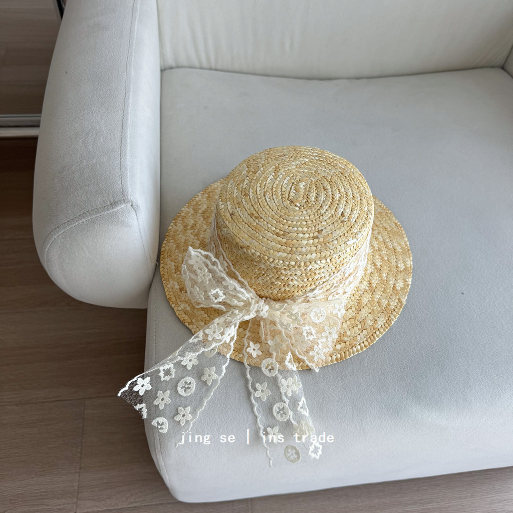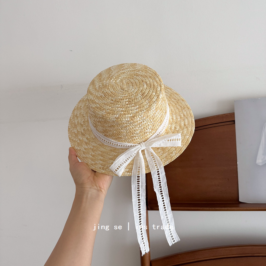 어린이 밀짚 모자 여아 아기의 차양 모자 리본 레이스 봄과 여름 차양 모자 한국 사진 모자