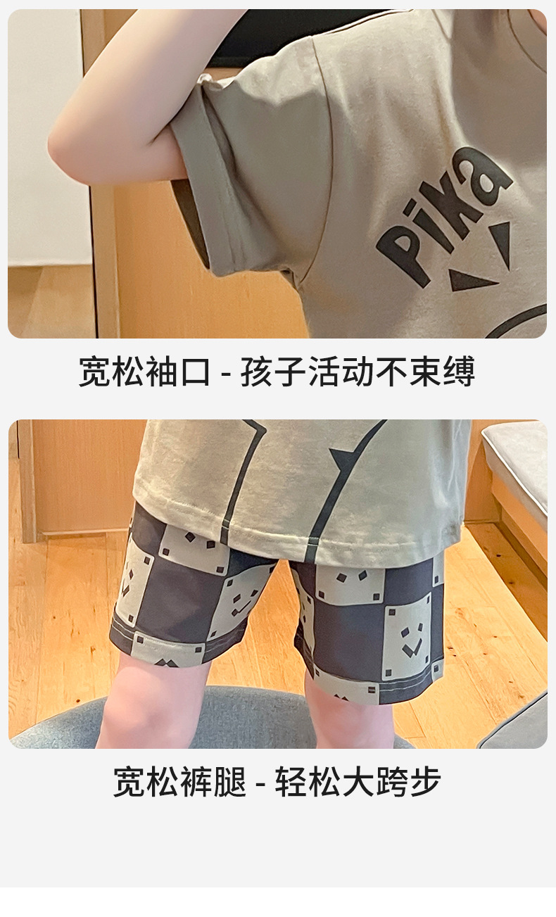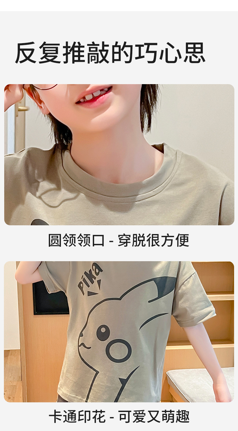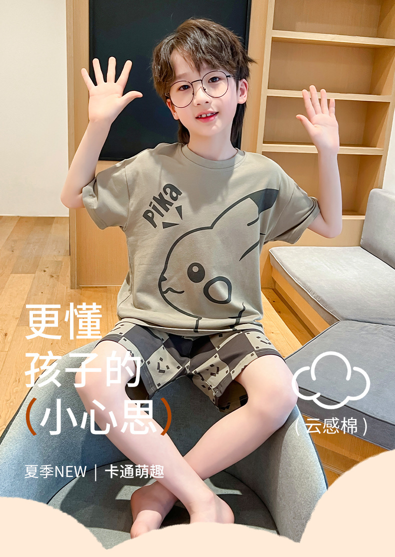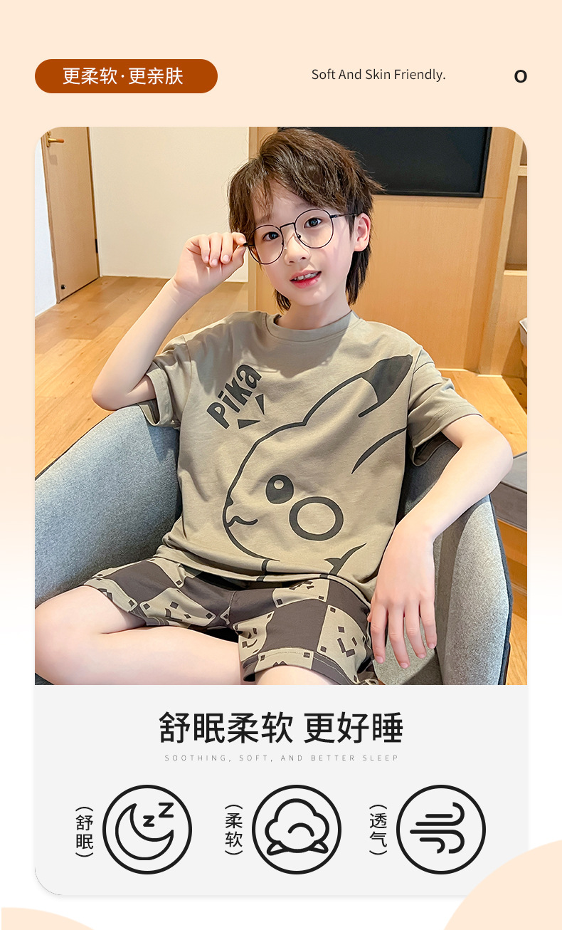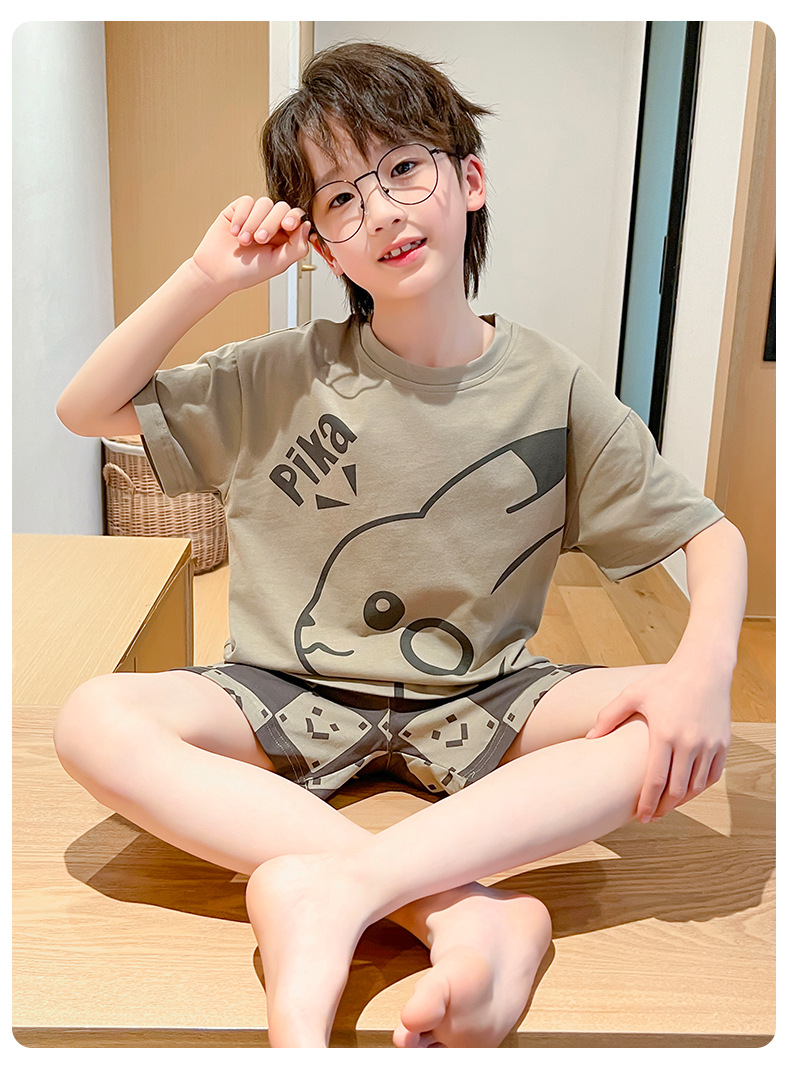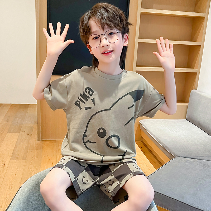 100-170cm 소년 여름 통기성 편안한 코튼 파자마 반팔 반바지 5-18 세 10 대 학생 세트스토어 가기