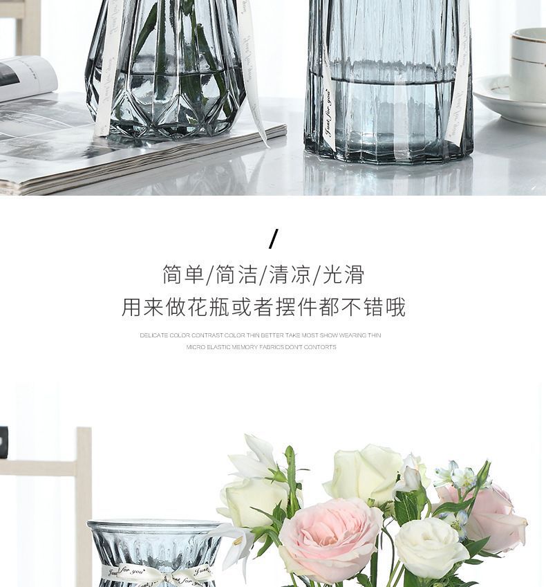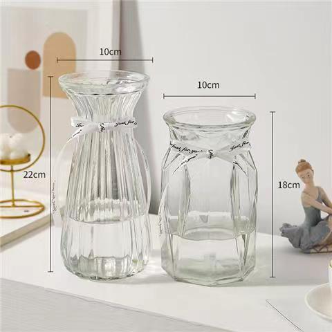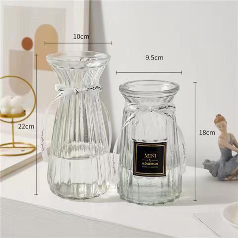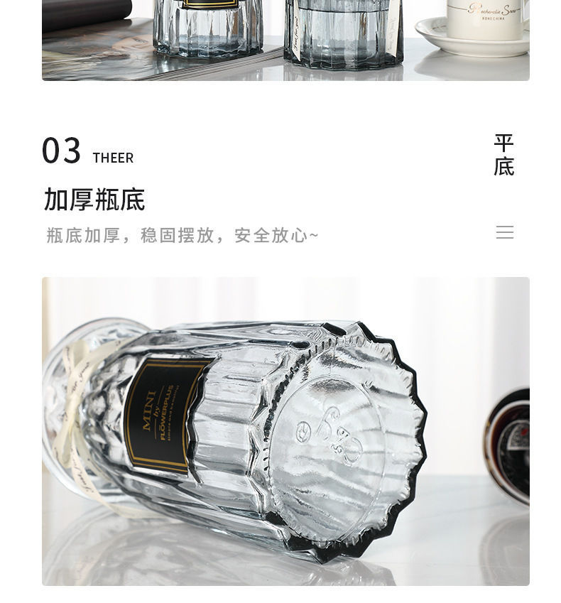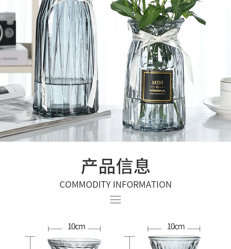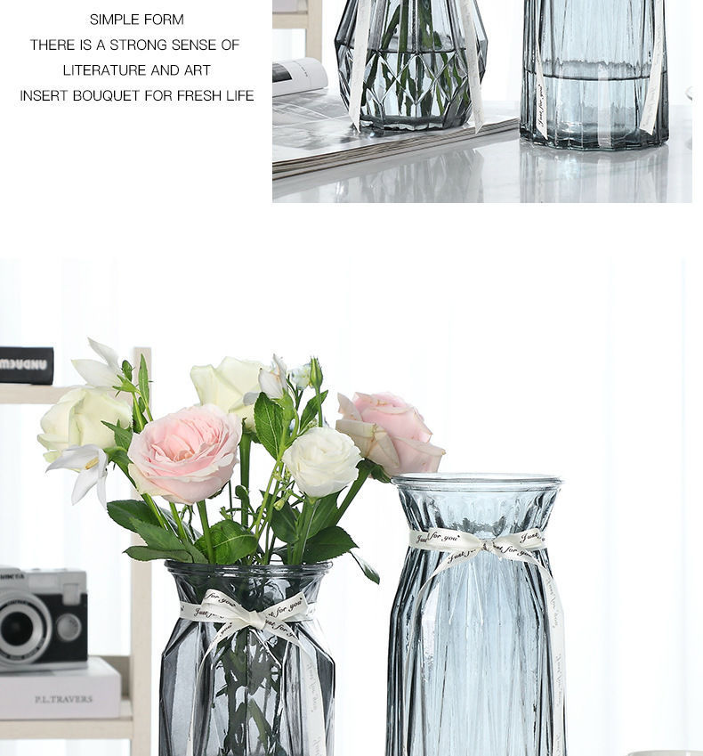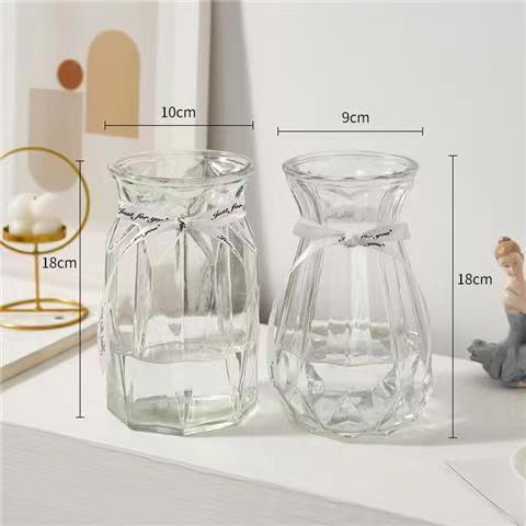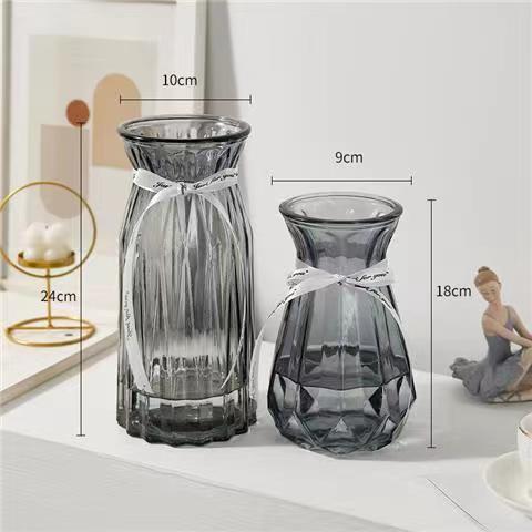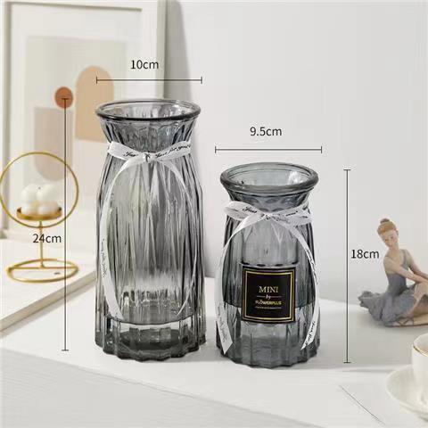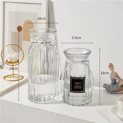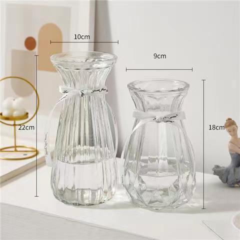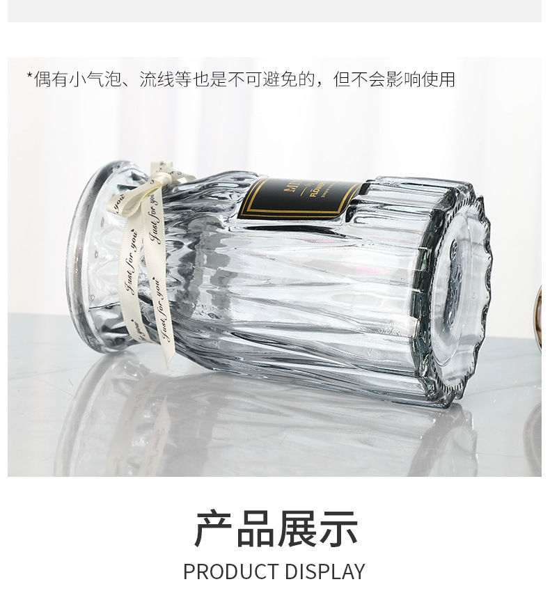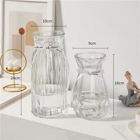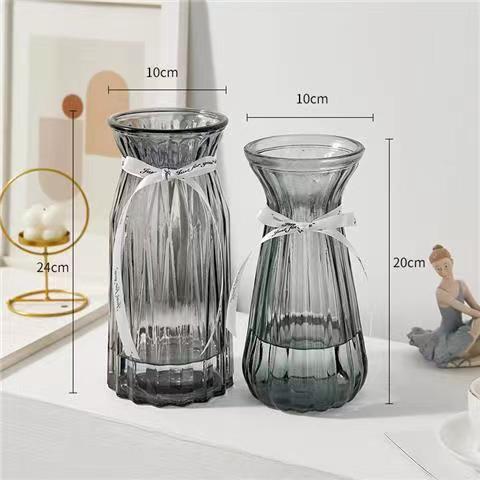 유럽식 수경 대형 수직 패턴 꽃병 종이 접기 유리 투명 장식 꽃병 풍부한 대나무 거실 장식품 무료 배송