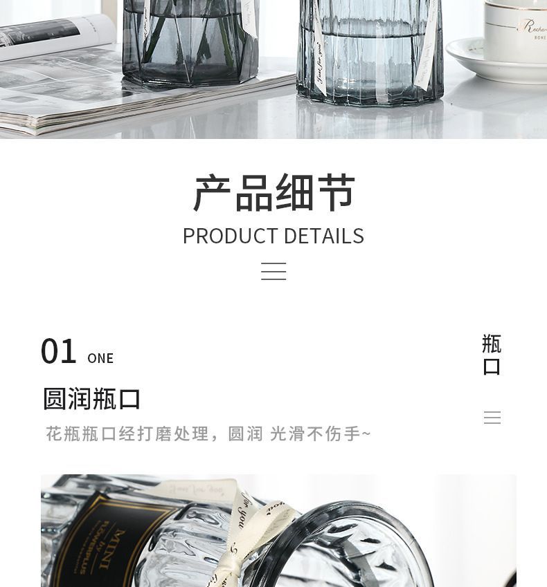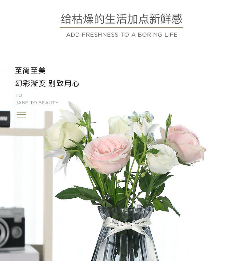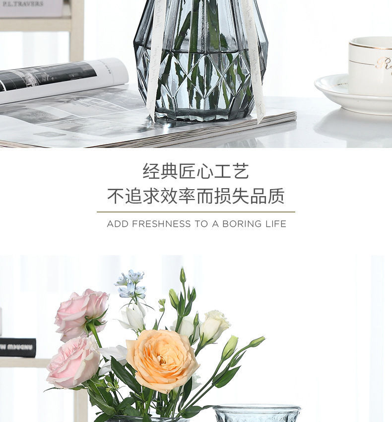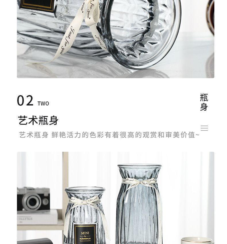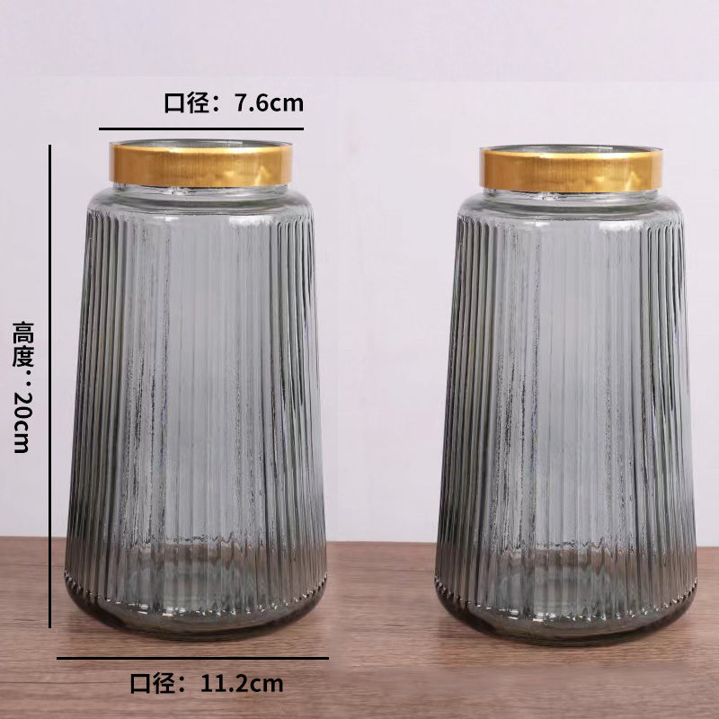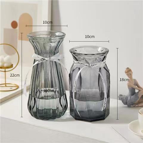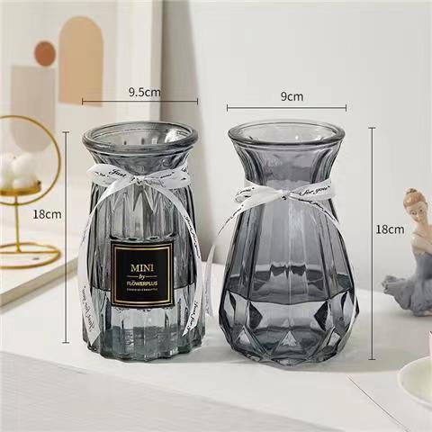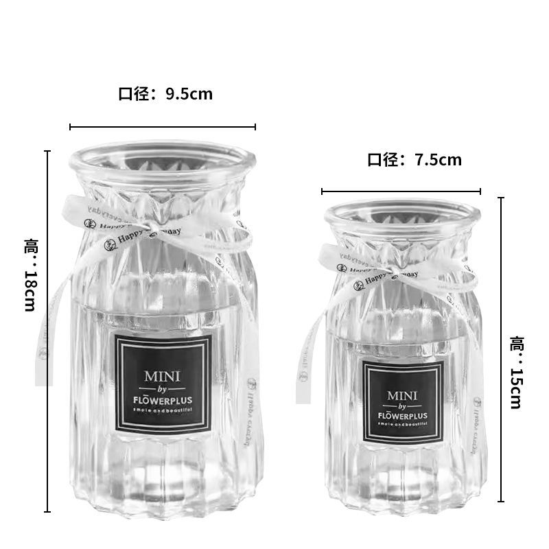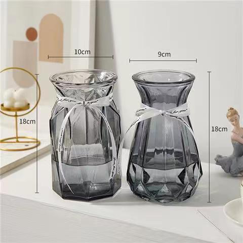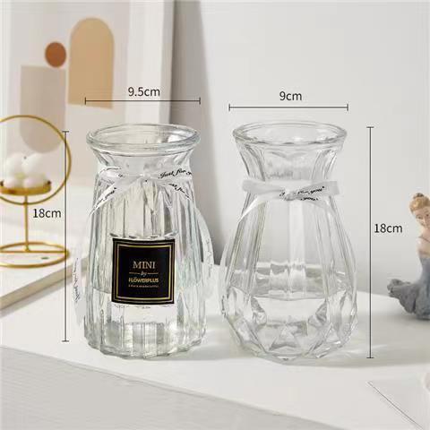 유럽식 수경 대형 수직 패턴 꽃병 종이 접기 유리 투명 장식 꽃병 풍부한 대나무 거실 장식품 무료 배송