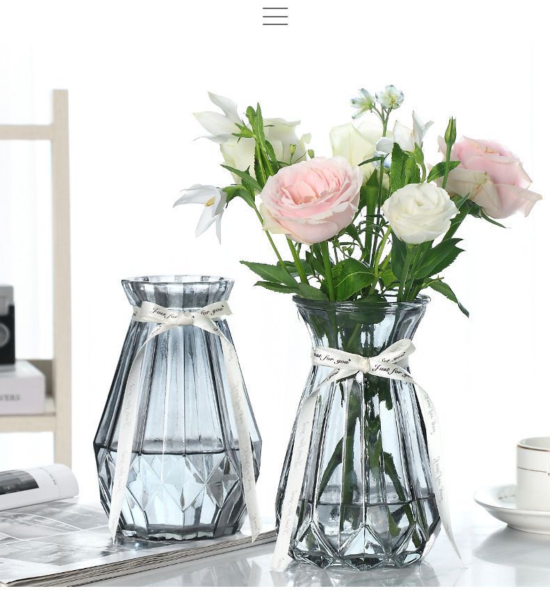 유럽식 수경 대형 수직 패턴 꽃병 종이 접기 유리 투명 장식 꽃병 풍부한 대나무 거실 장식품 무료 배송스토어 가기