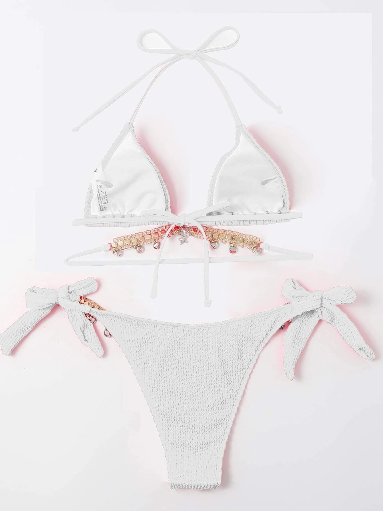 비키니 특수 직물 패션 수영복 여성 세트 섹시한 여러 가지 빛깔의 레이스 활 비치 수영복