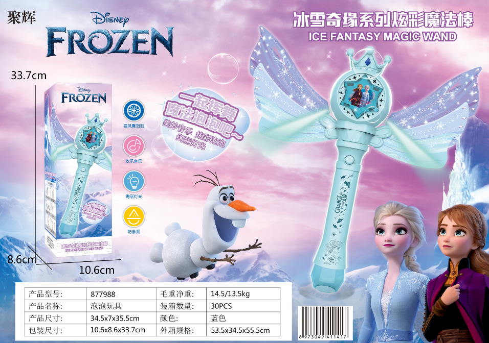 정품 디즈니 어린이용 자동 핸드헬드 얼음과 눈 만화 공주 왕관 마법 지팡이(소리와 거품이 나는)스토어 가기