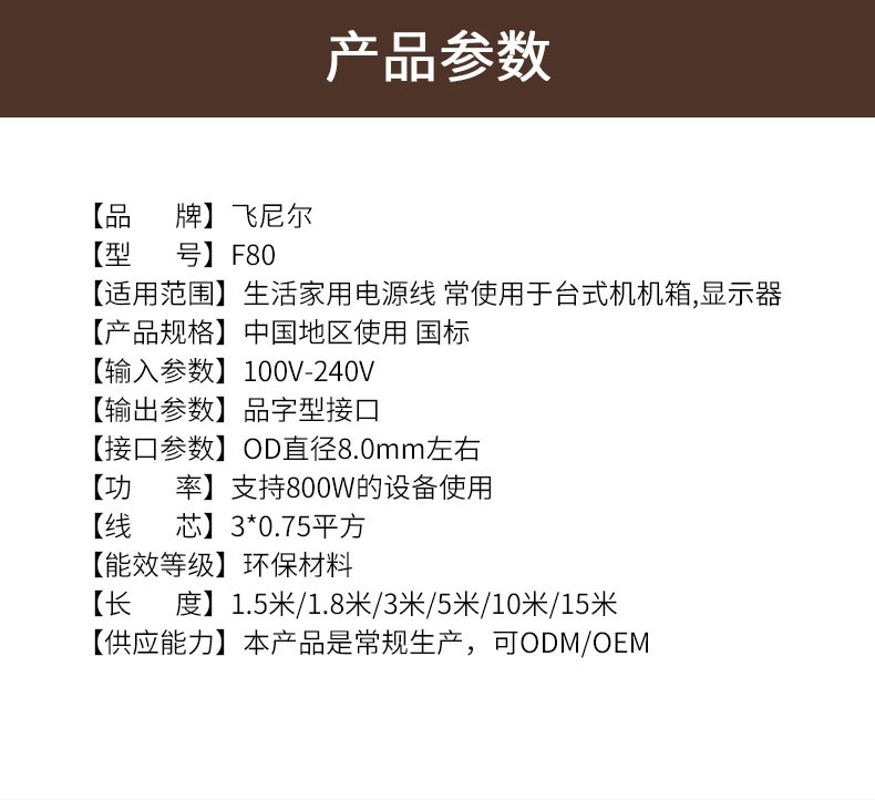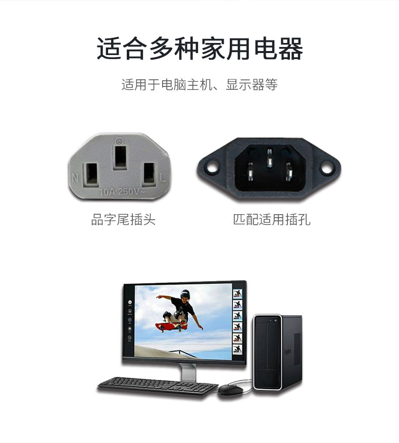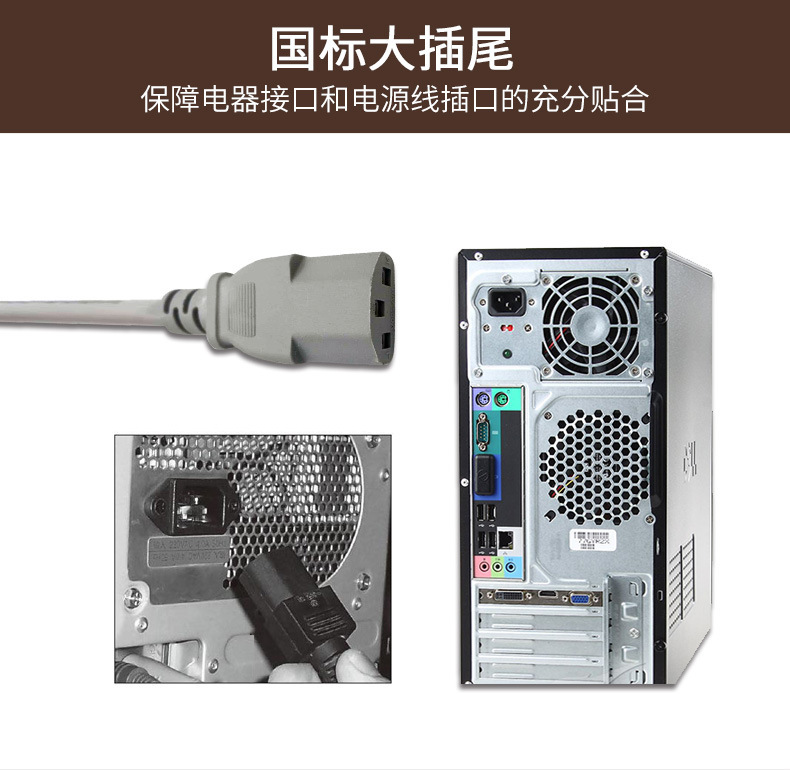 Feinier 검은 거위 머리 꼬리 전원 코드 컴퓨터 전원 코드 호스트 케이블 1.8 미터 OD8.0